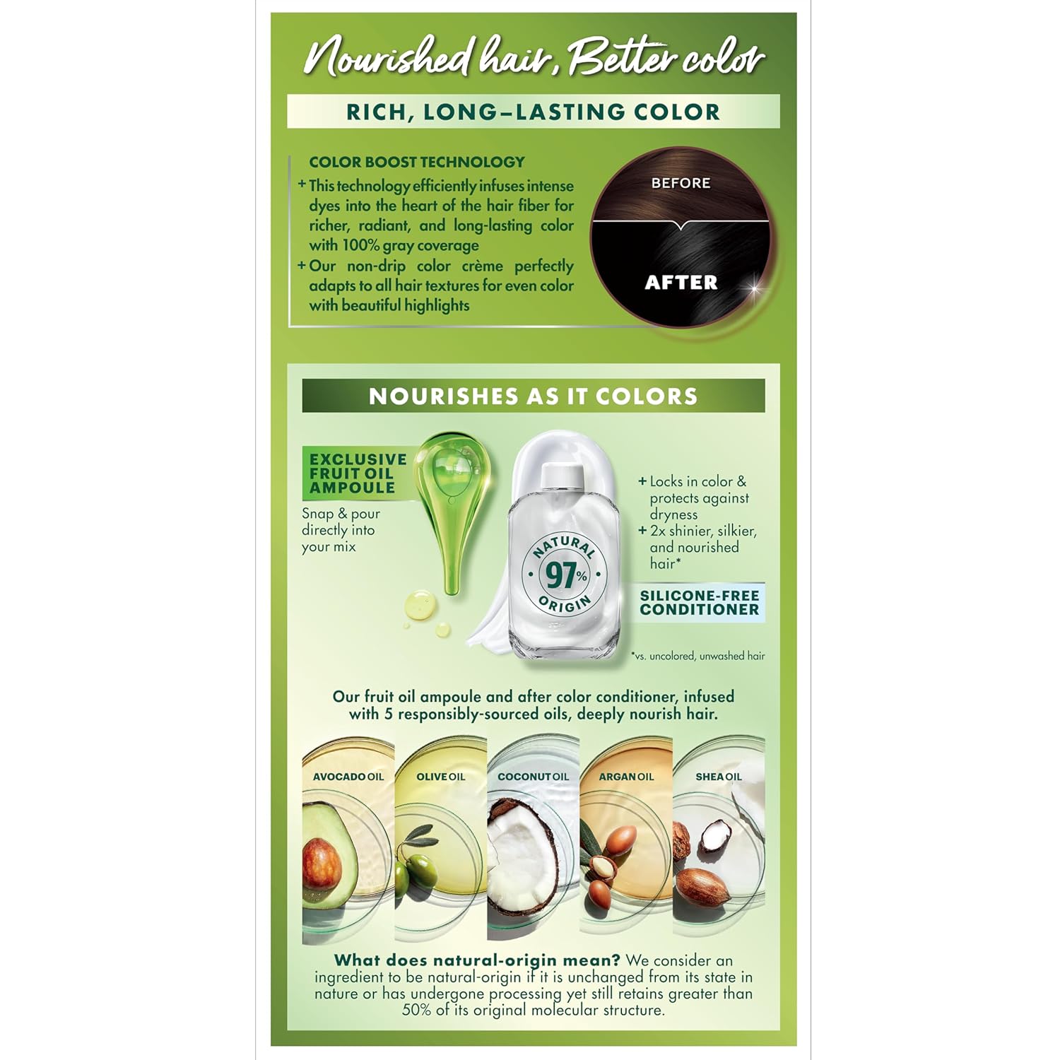 - Product Benefits : Discover the number 1 Nourishing Color Creme; Nutrisse Color is formulated with color boost technology and a blend of triple fruit oils: avocado, olive, and shea, to deliver permanent hair color, even to dark hair Discover the number 1 Nourishing Color Creme; Nutrisse Color is formulated with color boost technology and a blend of triple fruit oils: avocado, olive, and shea, to deliver permanent hair color, e… See more