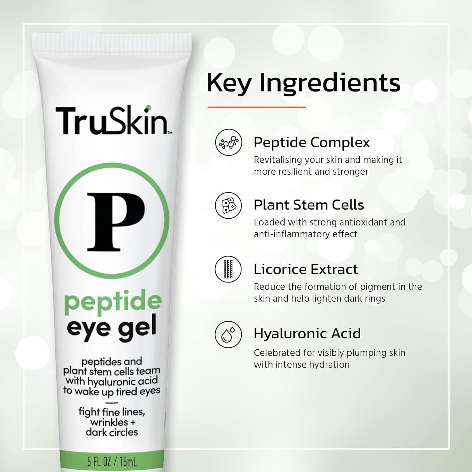 TruSkin Peptide Eye Gel – Minimize Lines & Brighten Eye Area – Dark Circles Under Eye Care with Peptides, Plant Stem Cells, Hyaluronic Acid, 0.5 fl oz