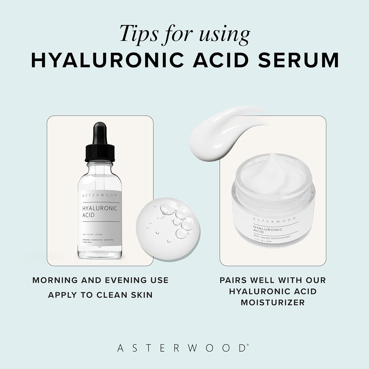 Asterwood Hyaluronic Acid Serum for Face - Plumping, Anti-Aging, Hydrating - Fragrance-Free - 1 Fl Oz