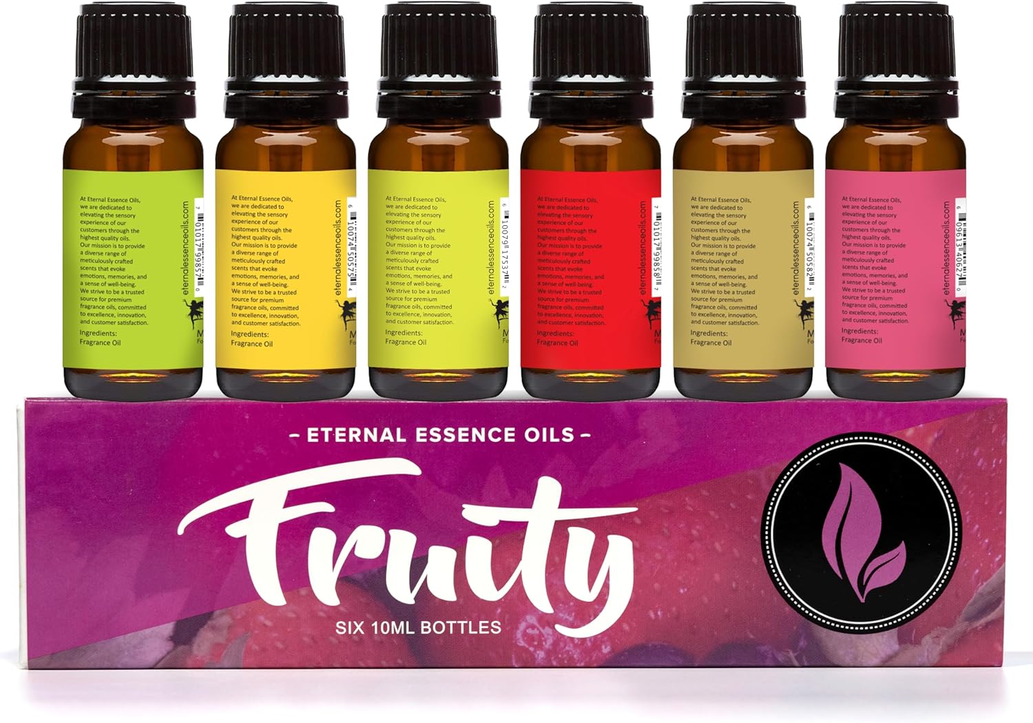 Eternal Essence Oils Fruity Set of 6 Premium Fragrance Oils - Includes Apple, Mango Madness, Honeydew Melon, Strawberry, Pear, and Grapefruit Scented Oil - 10ML