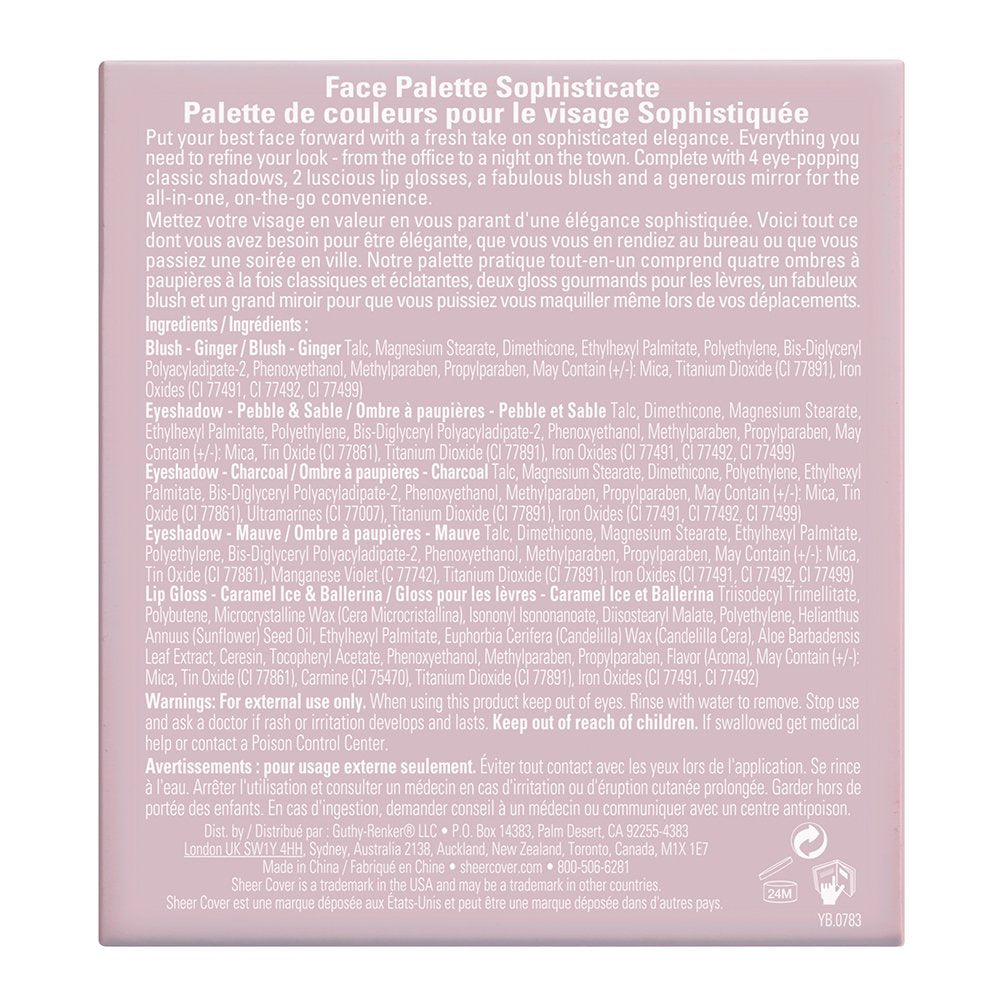 Sheer Cover – Sophisticate Look Face Palette For Eyes, Lips, and Cheeks – with Brush