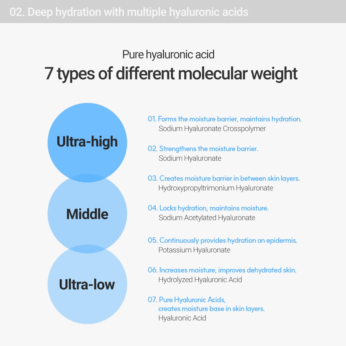 - Active Ingredients: 7 different types of Hyaluronic Acid hydrate skin from the deepest layer to the outermost layer. Ingredients such as caffeine de puffs and soothes skin, while Vitamin E in Papaya fruit extract helps smooth out skin's texture. Meanwhile, the natural ingredients in this gentle face toner work to calm sensitive skin.