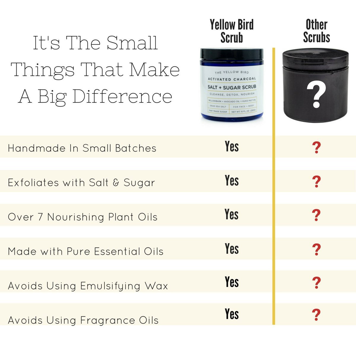 - Baby Soft Skin - Rediscover the skin of your youth. Hydrate and exfoliate with our salt & sugar scrub to get the most supple skin. Made with mild wholesome ingredients that won’t irritate. Use as a gentle face scrub and exfoliating body scrub.