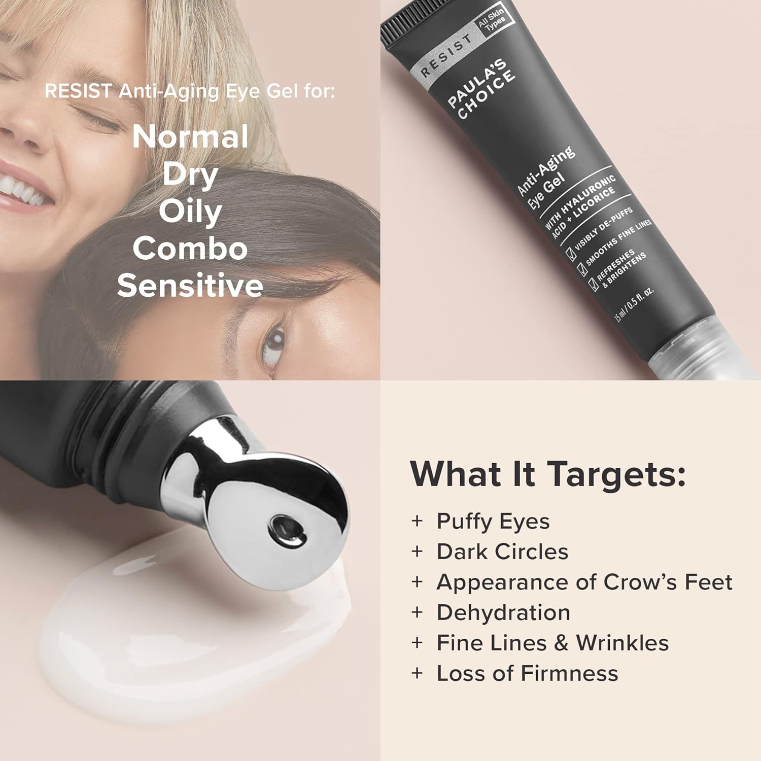 Paula's Choice RESIST Anti-Aging Eye Gel with Hyaluronic Acid, for Dark Circles, Puffy Eyes, Crow's Feet, Fine Lines & Wrinkles, 0.5 Ounce