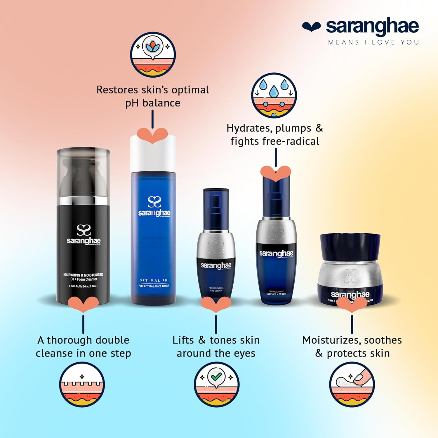 Saranghae Complete 5-Step Anti-Aging Skin Care Set - Cult-Favorite Skin Care Kit for Youthful Radiance! Heal, Regenerate, and Protect for Visible Results 45-90 Days Supply