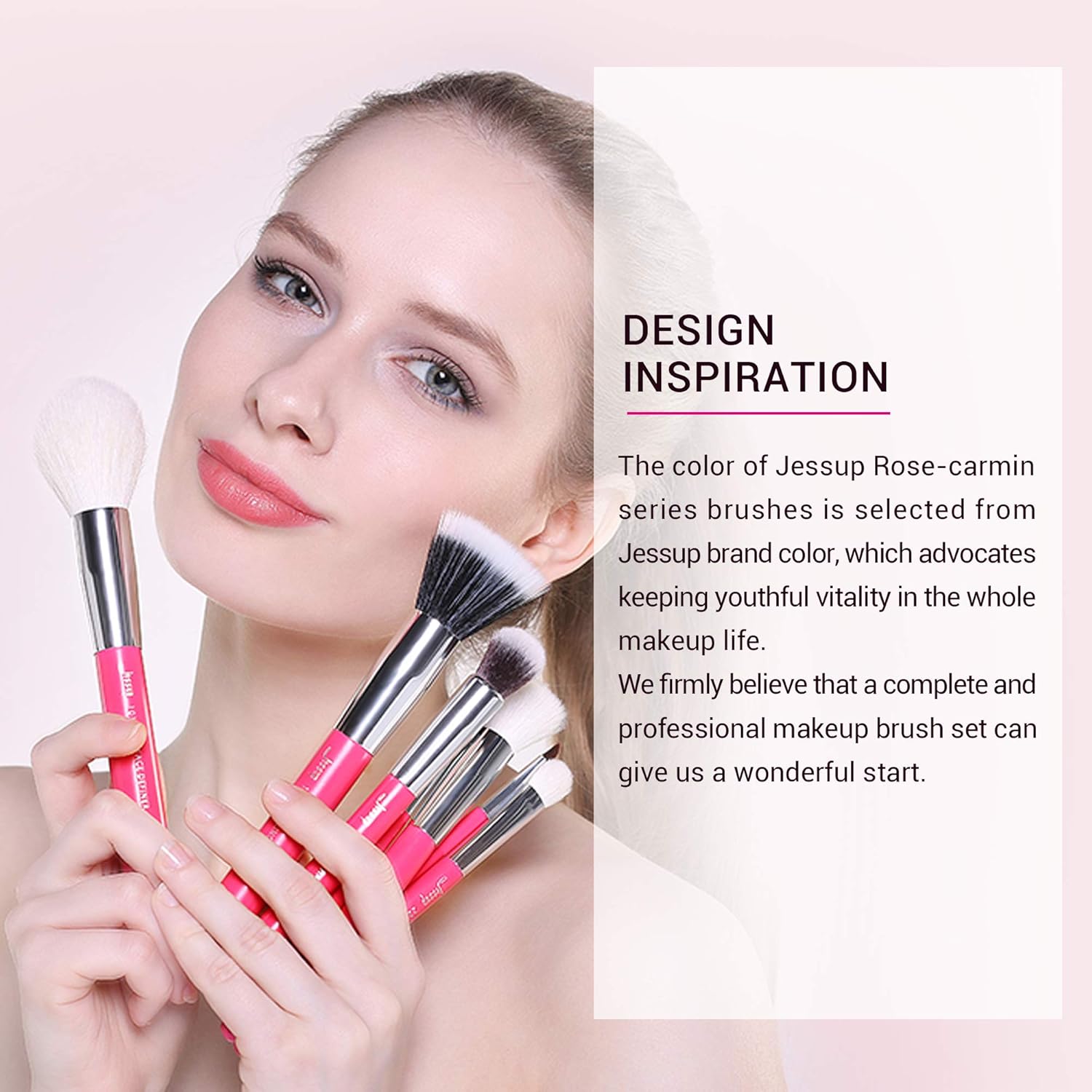 Jessup Brand 25pcs Professional Makeup Brush Set Beauty Cosmetic Foundation Powder Blusher Eye Shadow Blending Concealer Highlight Natural-Synthetic Hair Brushes Set (Rose Carmine/Silver)