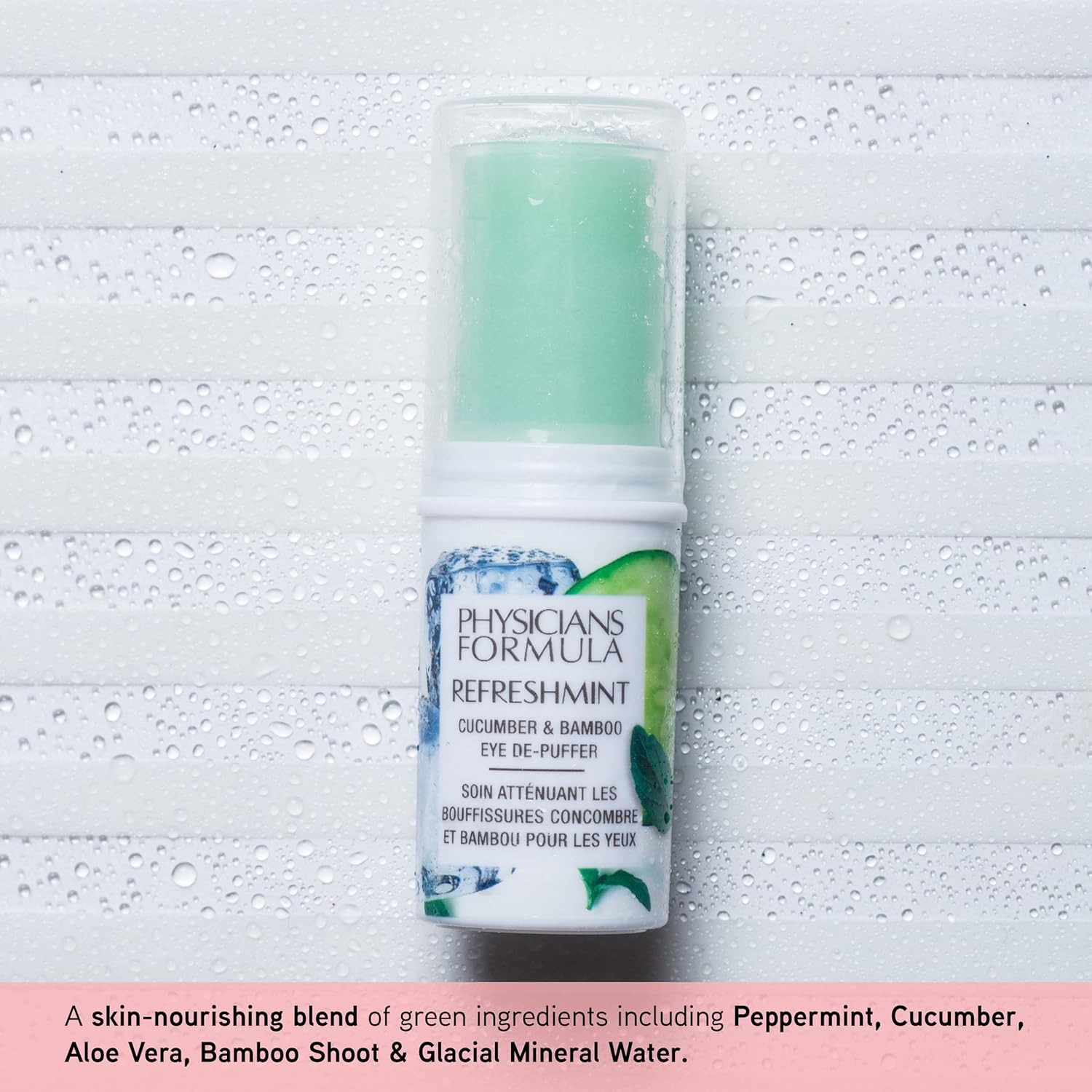 - REFRESHING EYE ROLLER STICK: Featuring a skin-nourishing blend of green ingredients including: Peppermint, Cucumber & Aloe Vera cool skin to visibly reduce the appearance of tired eyes, while hydrating Bamboo Shoot & Glacial Mineral Water refresh skin.