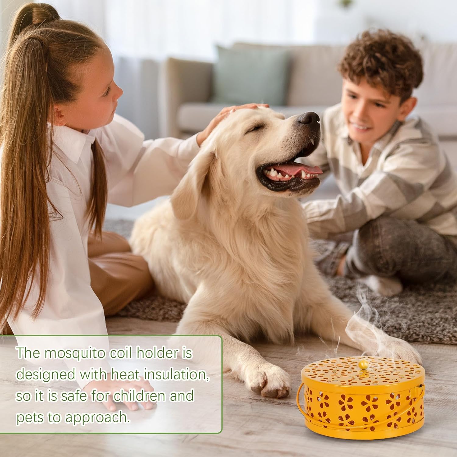 Portable Iron Mosquito Coil Holder with Handle Round Heat-Resistant Incense Holder (Yellow)