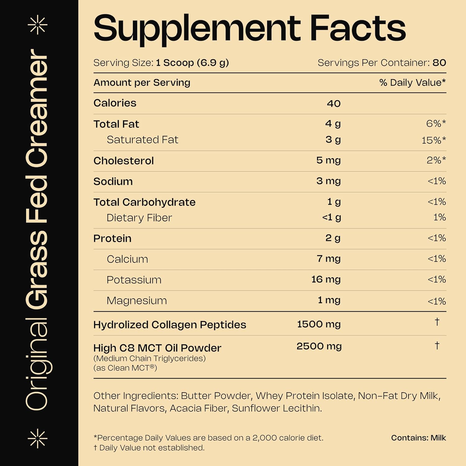 LevelUp Creamer, with Energizing MCT Oil and Collagen Peptides, Keto Coffee Creamer, Supports Natural Energy & Ketone Production - Original (Unsweetened) 19 oz