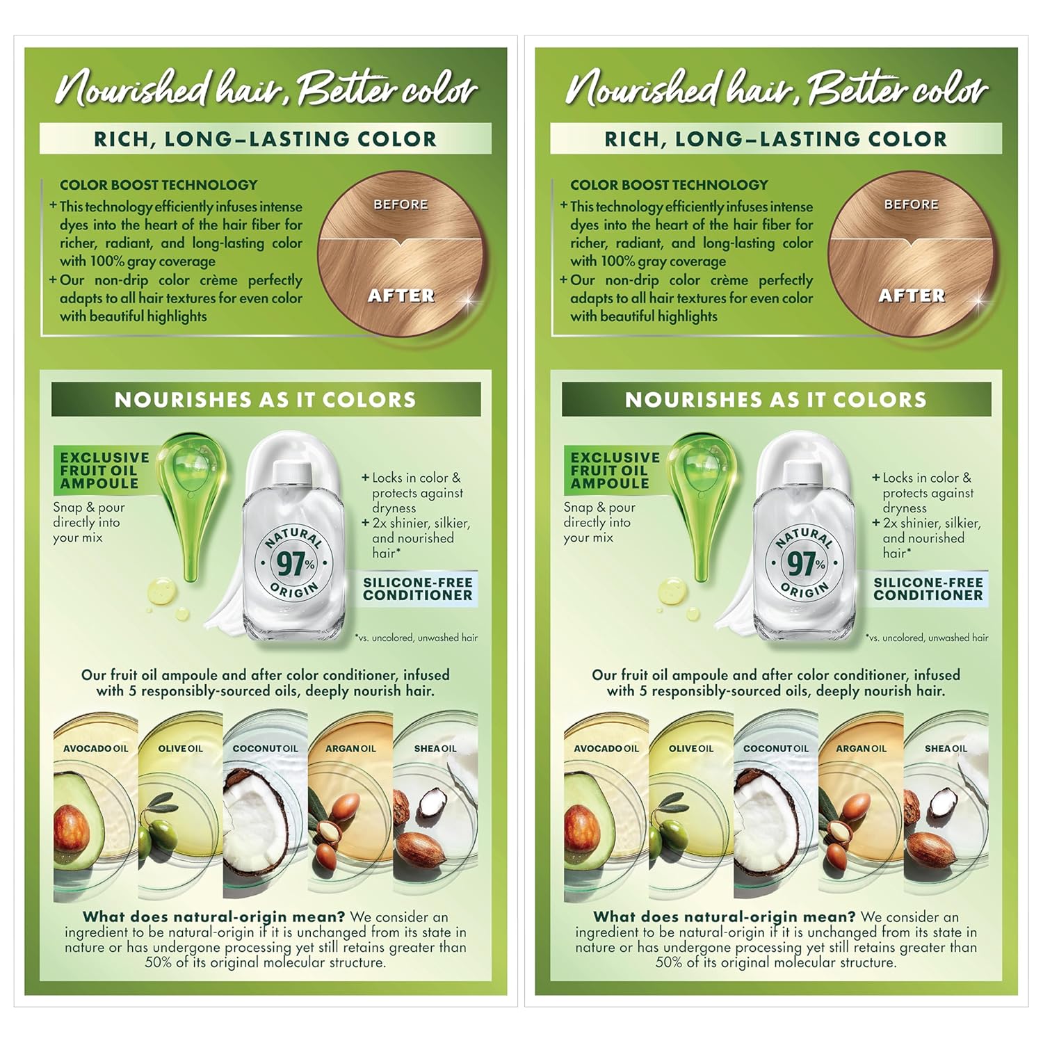 - Hair Dye Kit: The only hair color with a separate fruit oil ampoule that you snap & pour directly into the mix; Follow hair dye with our after color hair conditioner, infused with a blend of 5 fruit oils: avocado, olive, shea, argan & coconut oil