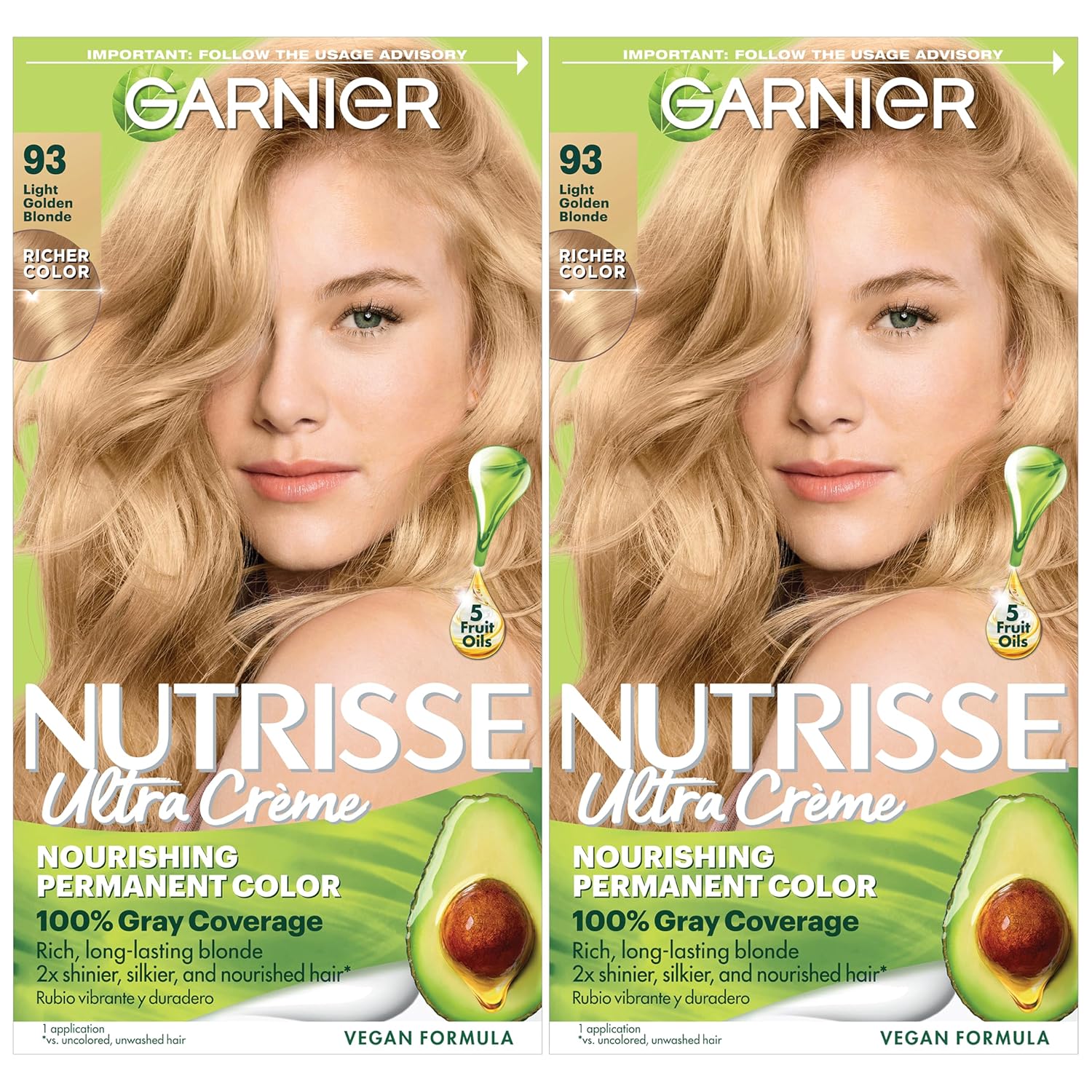 Garnier Hair Color Nutrisse Nourishing Creme, 93 Light Golden Blonde (Honey Butter) Permanent Hair Dye, 2 Count (Packaging May Vary)