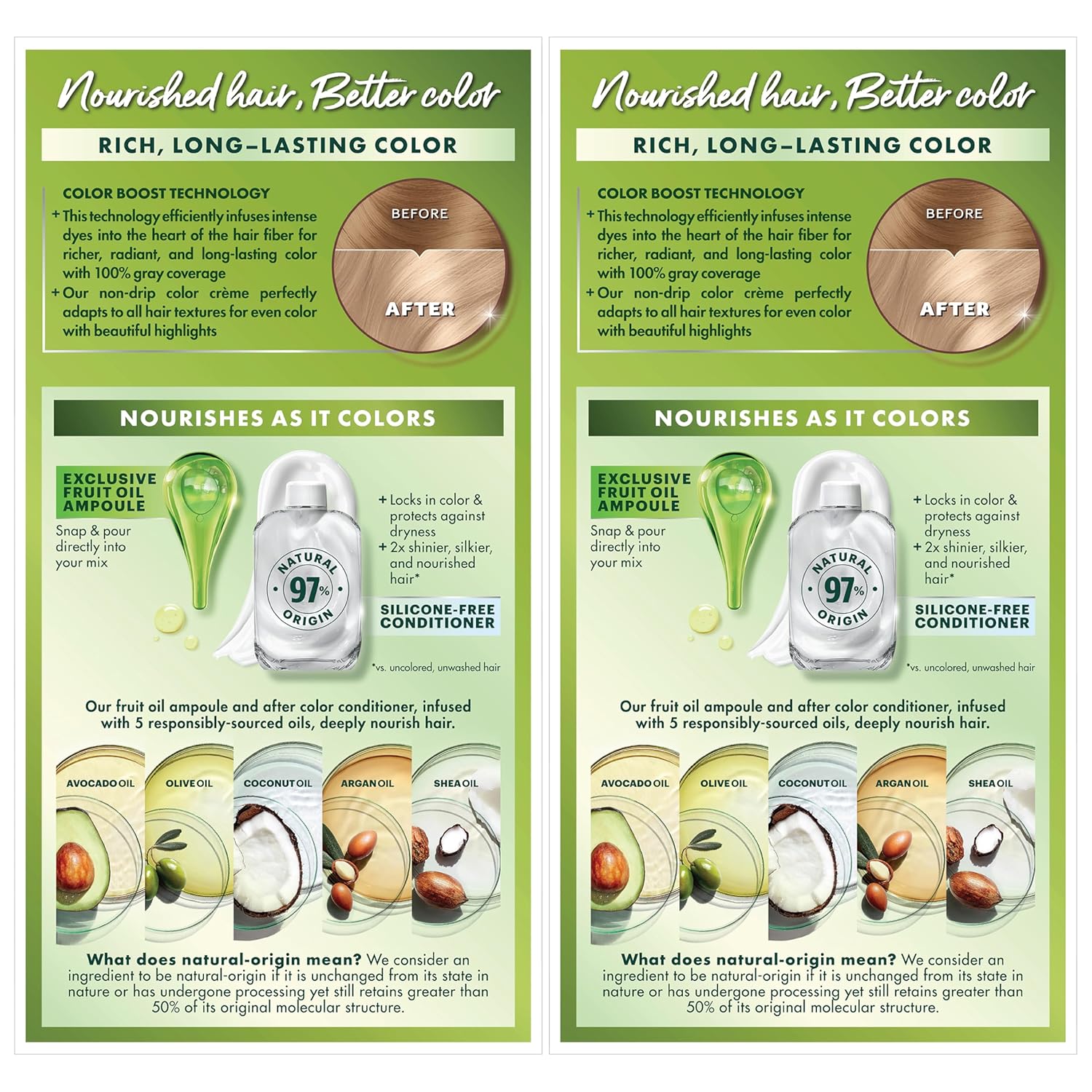 - Hair Dye Kit: The only hair color with a separate fruit oil ampoule that you snap & pour directly into the mix; Follow hair dye with our after color hair conditioner, infused with a blend of 5 fruit oils: avocado, olive, shea, argan & coconut oil