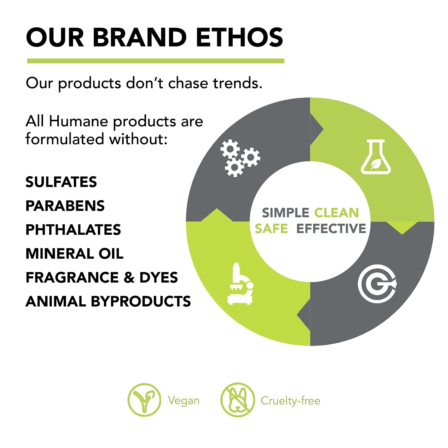 - Simple, Clean, Safe & Effective: Our products don’t chase trends. Instead, we harness the healing powers of potent ingredients to get you real results with clean, vegan and cruelty-free ingredients. You won't find parabens, phthalates, sulfates (SLS and SLES), alcohol, paraffin, formaldehyde, mineral oil, synthetic fragrance/color, petrolatum, DEA, triclosan, GMOs or animal byproducts in our formulations. A proud member of PETA’s Beauty Without Bunnies program. Made in the USA.