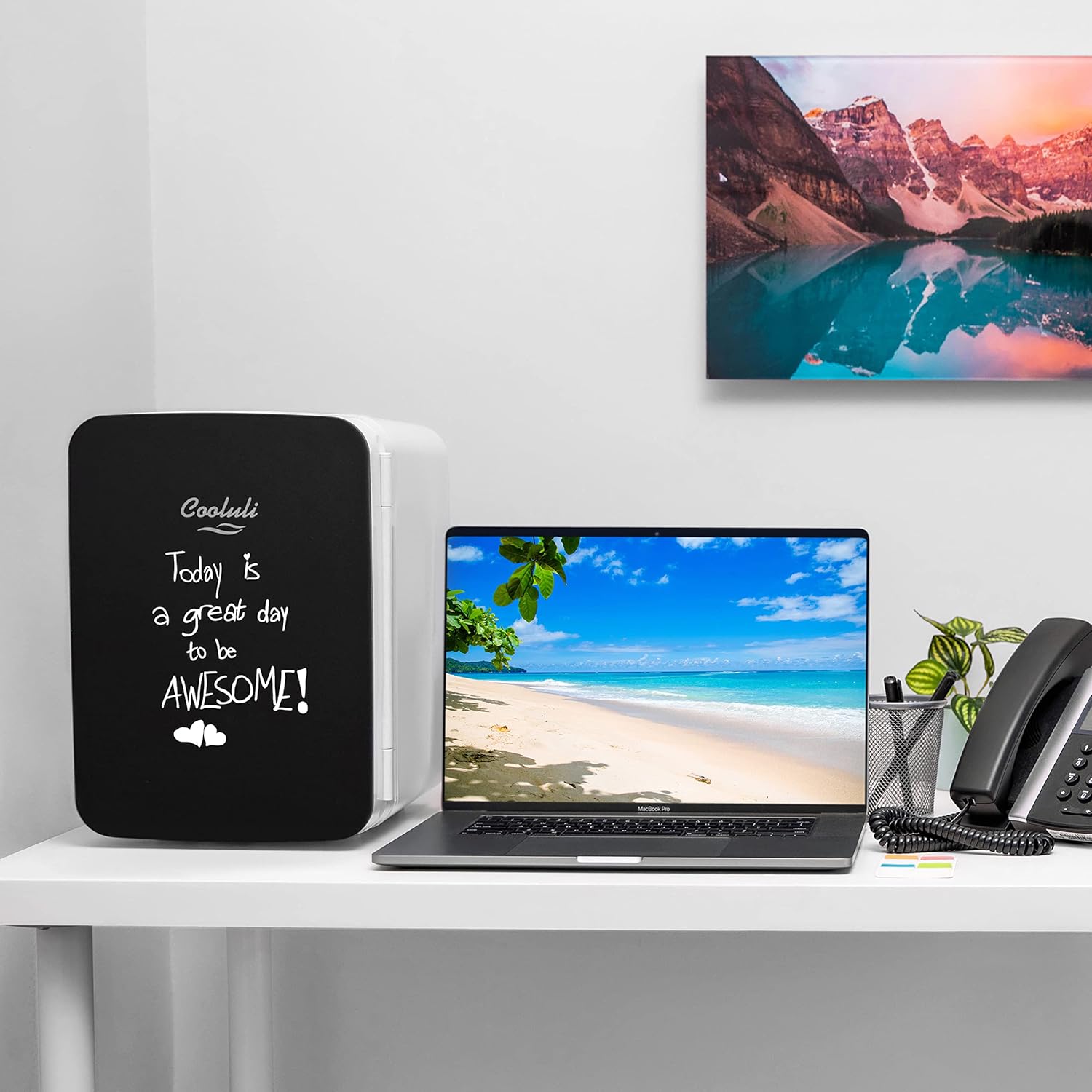 Cooluli 10L Mini Fridge for Bedroom, Car, Office Desk & Dorm - Portable Thermoelectric Cooler & Warmer for Food, Drinks, Skincare - AC/DC Refrigerator with Glass Front, Black