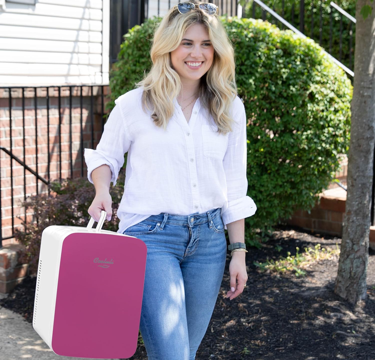 Cooluli 15L Mini Fridge for Bedroom - Car, Office Desk & College Dorm Room - 12v Portable Cooler & Warmer for Food, Drinks, Skincare, Beauty & Makeup - AC/DC Small Refrigerator with Glass Front, Pink