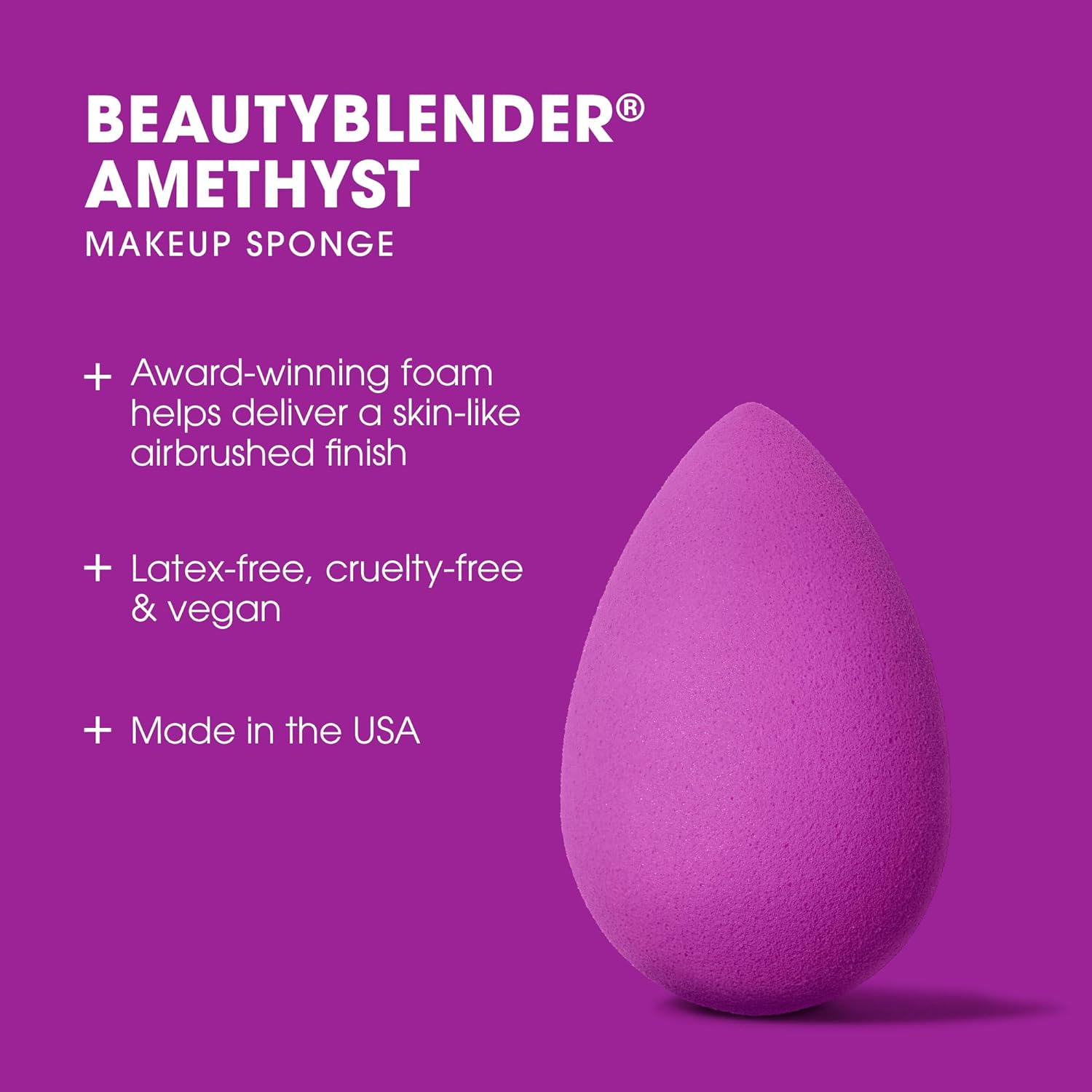 Beautyblender® | Amethyst Beauty Blender Makeup Sponge, Super-Soft Foam Easily Blends Foundations, Powders & Creams, Made in USA, Reusable, Washable, Streak Free Application, Vegan, Cruelty Free