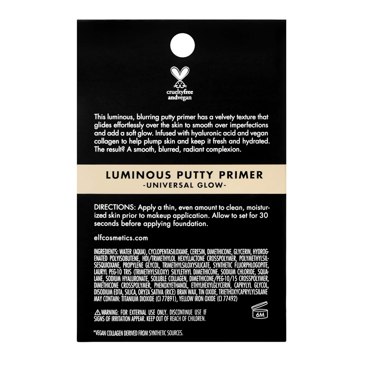 e.l.f. Luminous Putty Primer, Skin Perfecting, Lightweight, Silky, Long Lasting, Hydrates, Creates a Smooth Base, Illuminates, Plumps, Infused with hyaluronic acid and vegan collagen, 0.74 Oz