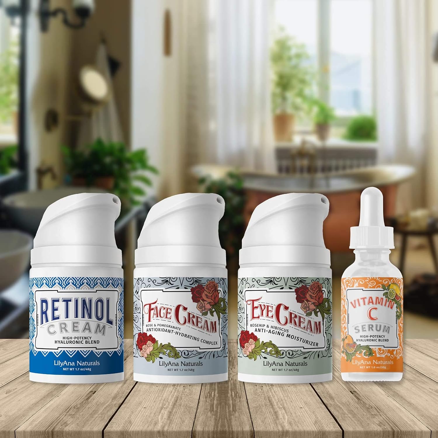 LilyAna Naturals Skincare Gift Set - Retinol Cream, Vitamin C Serum, Eye Cream and Face Cream Moisturizer - Anti Aging Skin Care Sets for Women