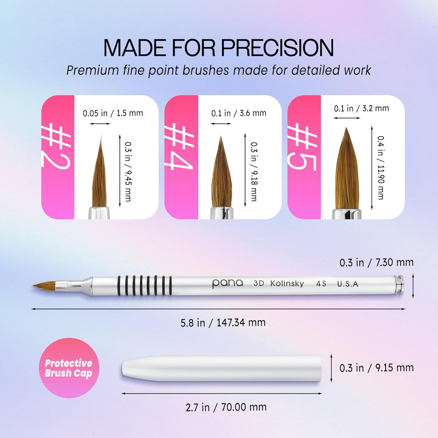 PANA 3D Kolinsky Acrylic Nail Art Sculpture Brush with Silver Metal Non-Slip Grip Handle for Manicures 3D Nail Art Flower Designs (Size #4)