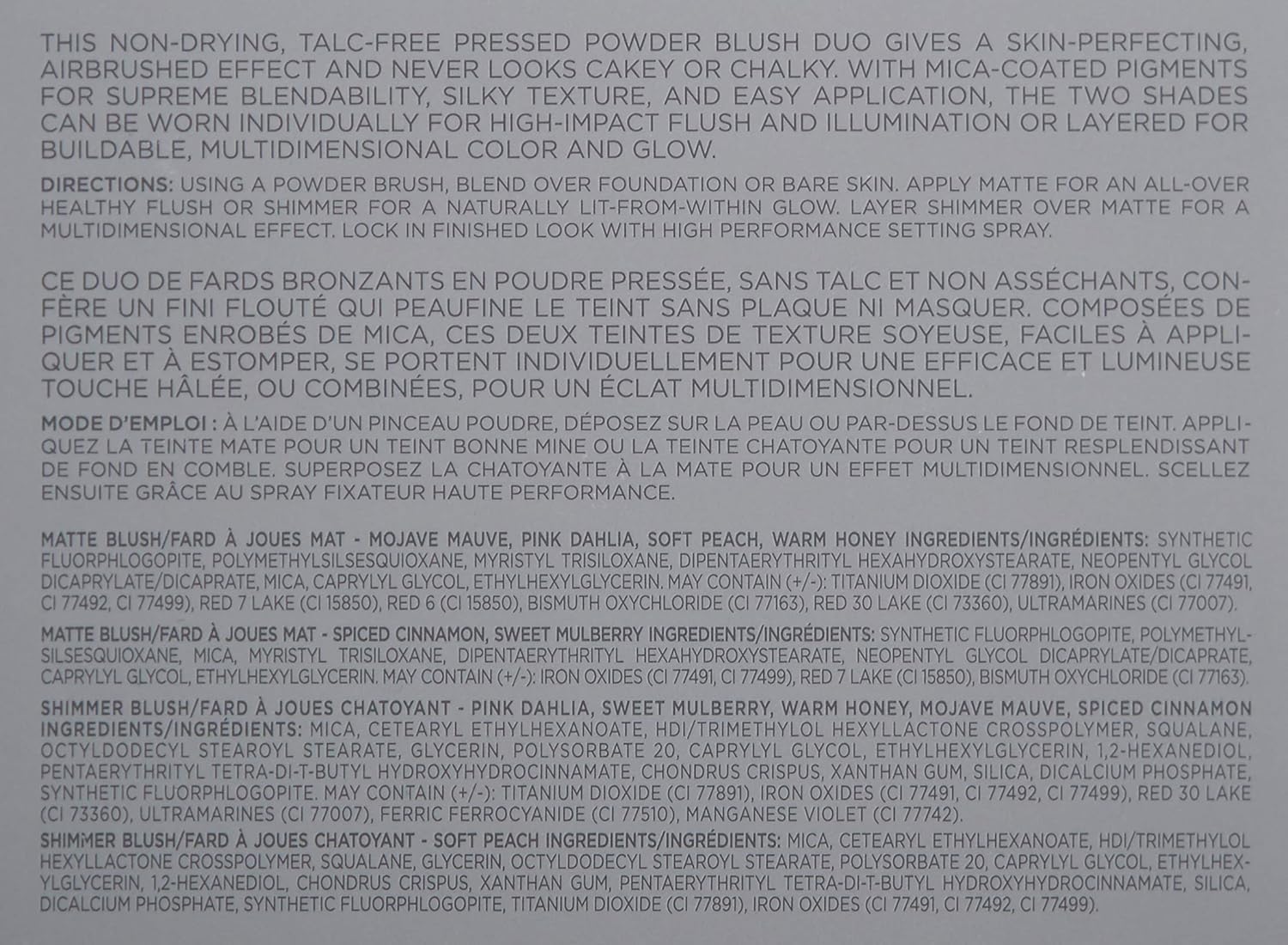 - THE PERFECT BLUSH DUO: Discover this matte and shimmer blush duo to illuminate and sculpt your face, now available in a peachy nude shade for all skin tones.