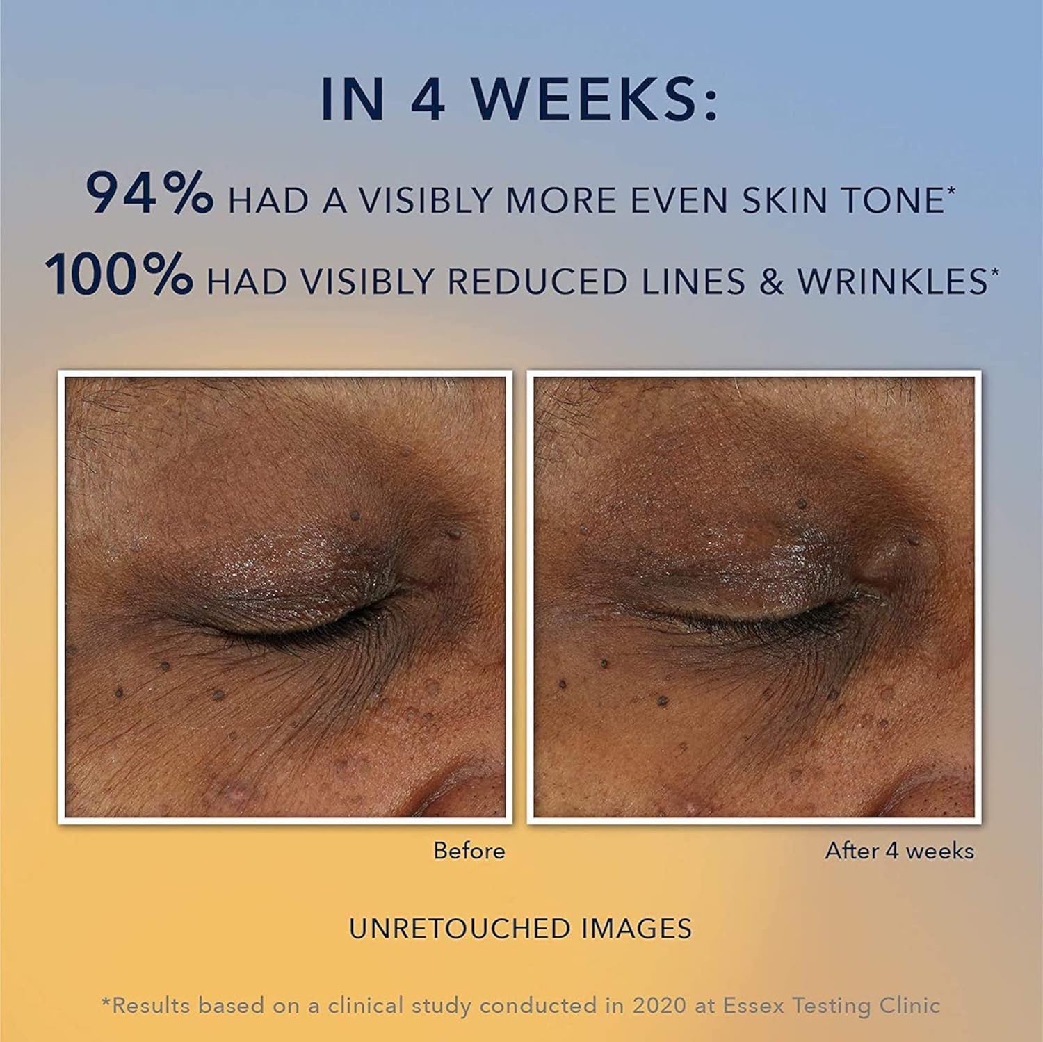 - PROVEN RESULTS: Experience clinically proven benefits. Instantly, skin is visibly radiant. In 1 week, skin looks brighter & texture is visibly improved. In 4 weeks, skin appears tighter, discoloration is visibly reduced, & elasticity appears restored.