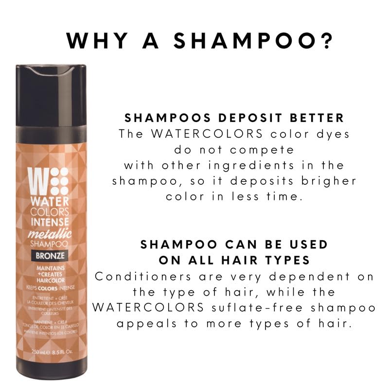 - What Makes Watercolors Shampoos Unique? 3-in-1 Color Depositing Shampoo - Cleanses, Conditions and Refreshes Color: Replace the color that has faded from your hair. Intensify while cleansing and conditioning with every wash. Restore and Rejuvenate color treated hair in one wash