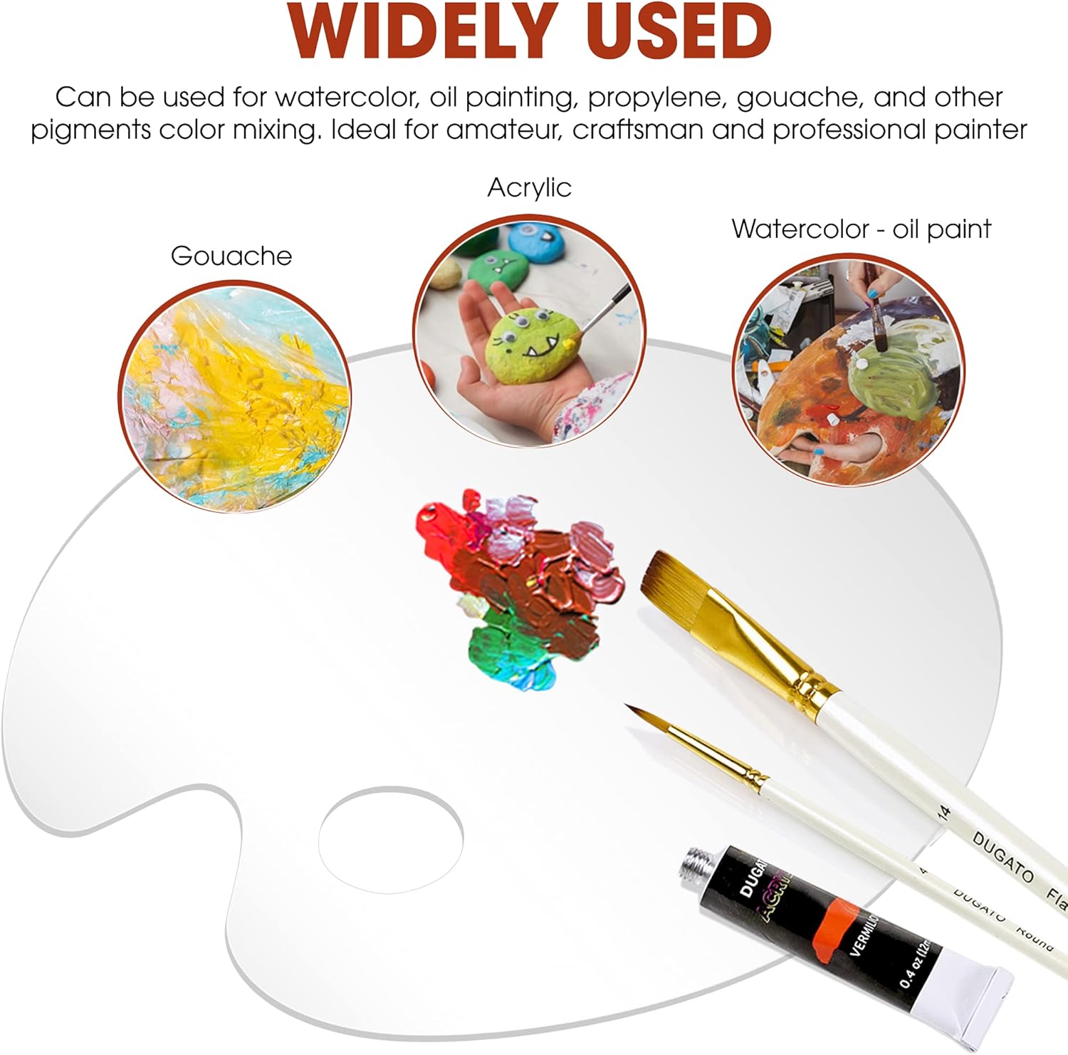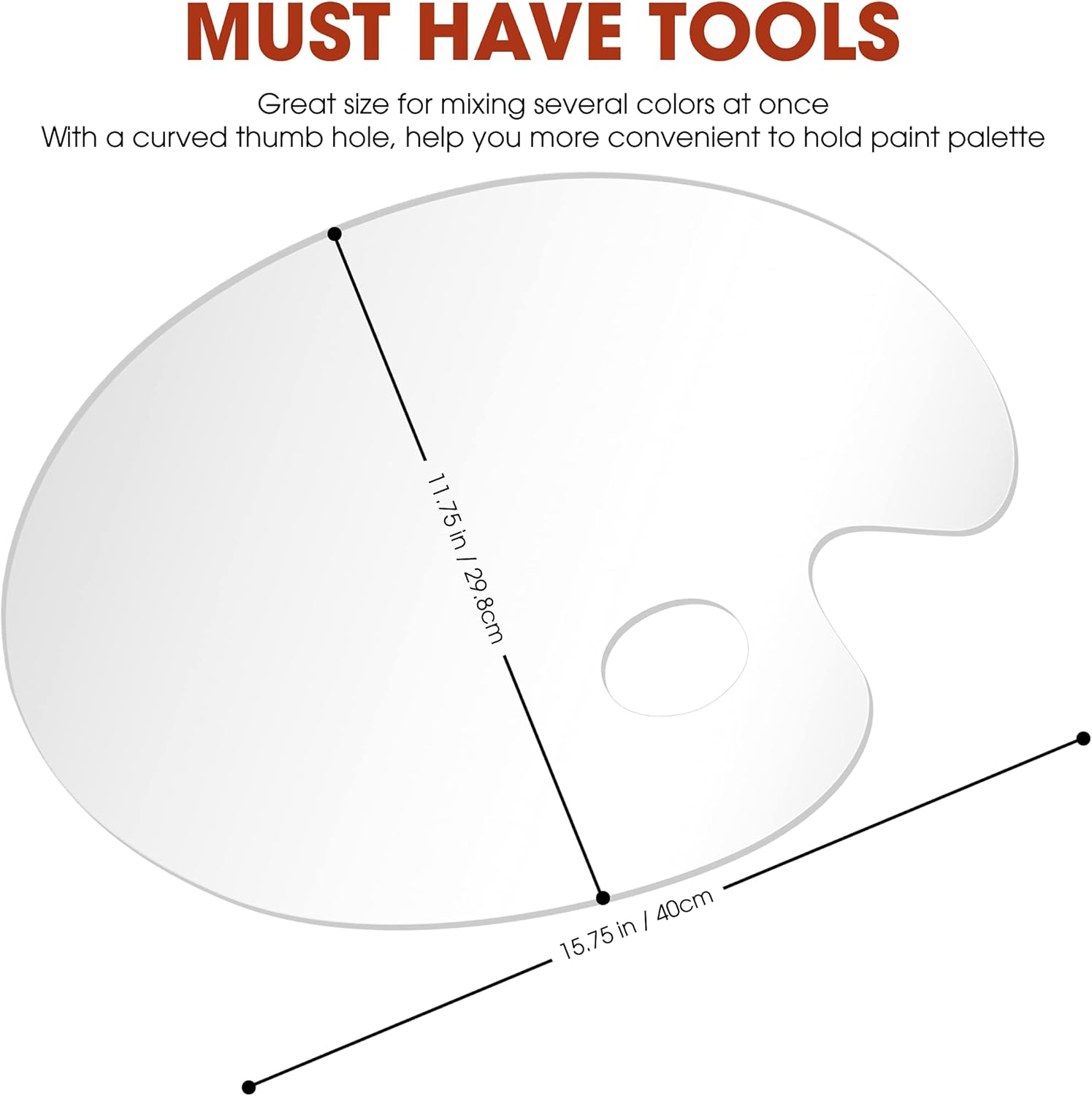 - 🎨 Oval Shaped Pallet Size: 15.7 x 11.8 Inches - Great size for mixing several colors at once. Suitable for art projects, makeup parties, and crafts. Widely used in parties, workshops, art groups, or lessons.
