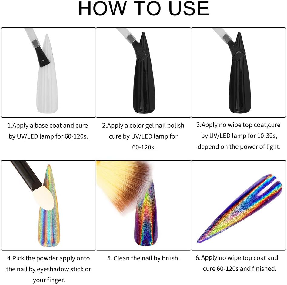 - PACKAGE:4 holographic powders,14 chrome powders and 1 Aurora Mermaid powder,1 chameleon powder.