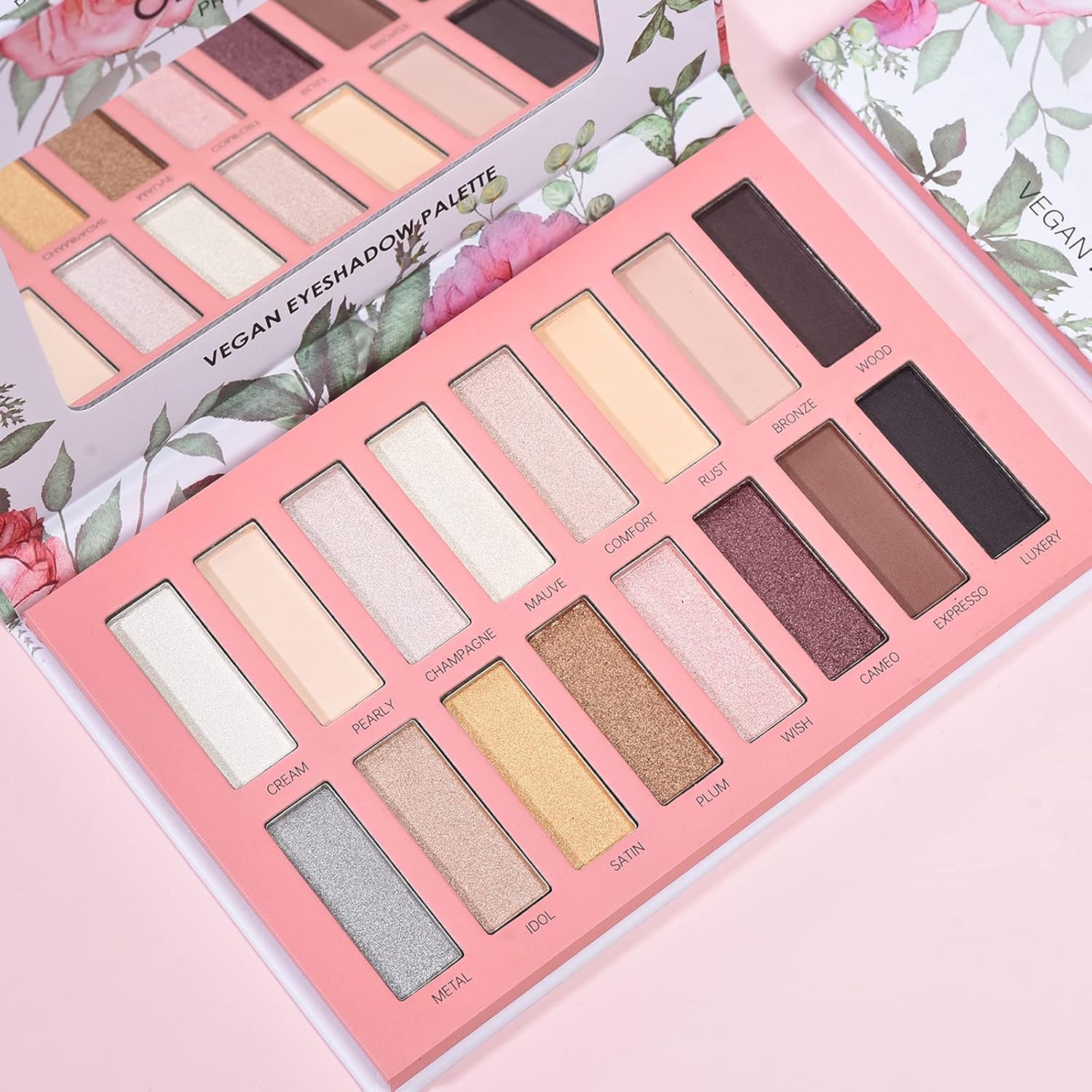 Vegan Eyeshadow Palette High Pigmented Brown Eyeshadow Palette Easy to Blend Color Fusion 16 Shades Metallic and Shimmer Nude Eyeshadow Palette Long Lasting Sweatproof and Waterproof