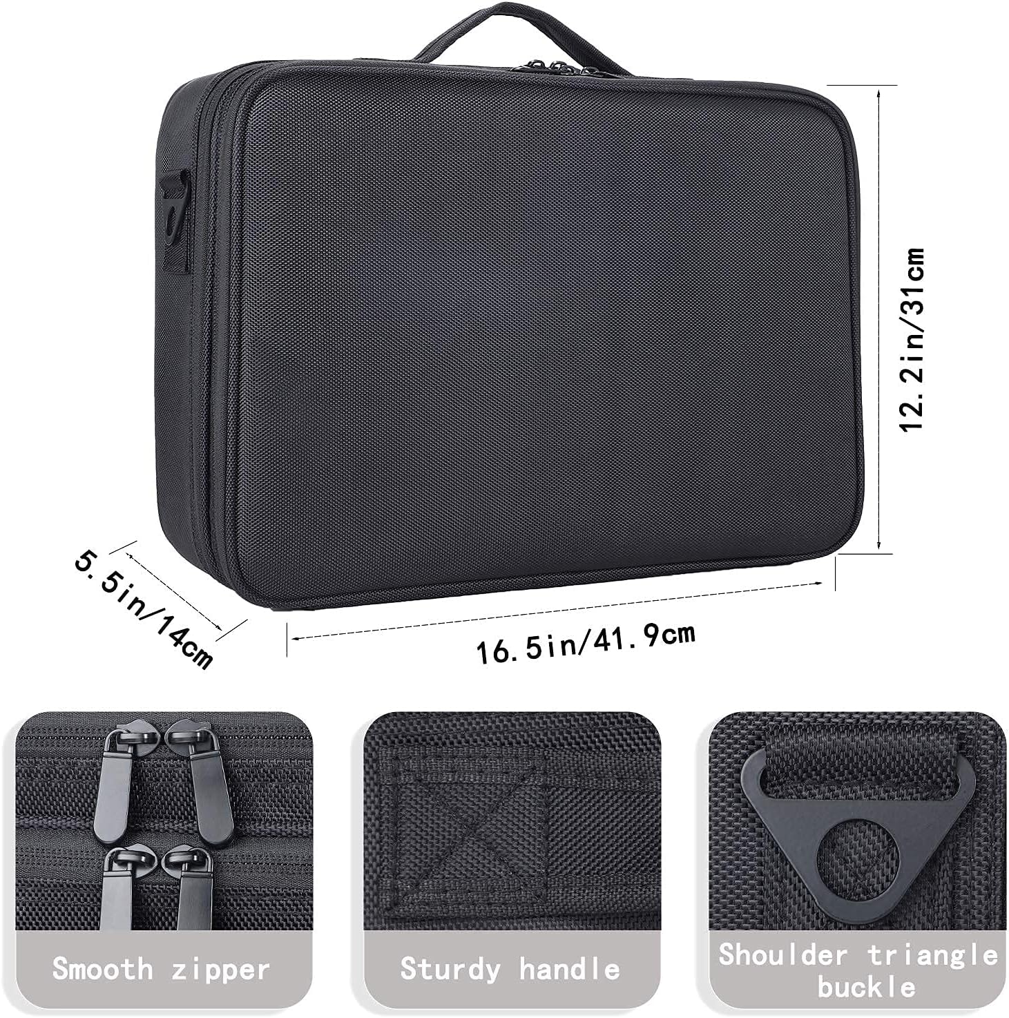 - Large Capacity:JOURMON large makeup bag is designed in 3-layers (40×29×12 cm / 16.5×12.2×5.5 inches). This makeup travel case has enough space to store your cosmetic accessories, like lipstick, nail polish, makeup brushes, eyeshadow palette, etc.