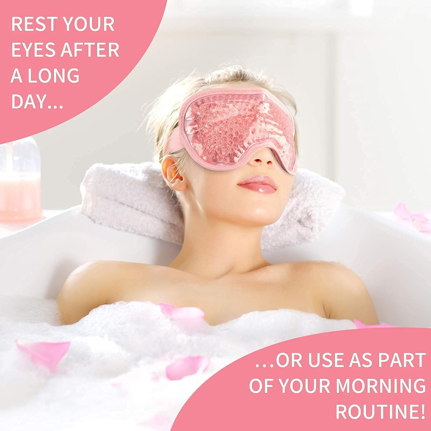 - RELIEVE DISCOMFORT: The gel bead eye mask is a quick and easy way to relieve your eye discomfort. Freezing the cooling gel eye mask and put it on your eyes to reduce puffiness from a night of poor sleep or a late night, or to relieve tired eyes that have been staring at a computer all-day