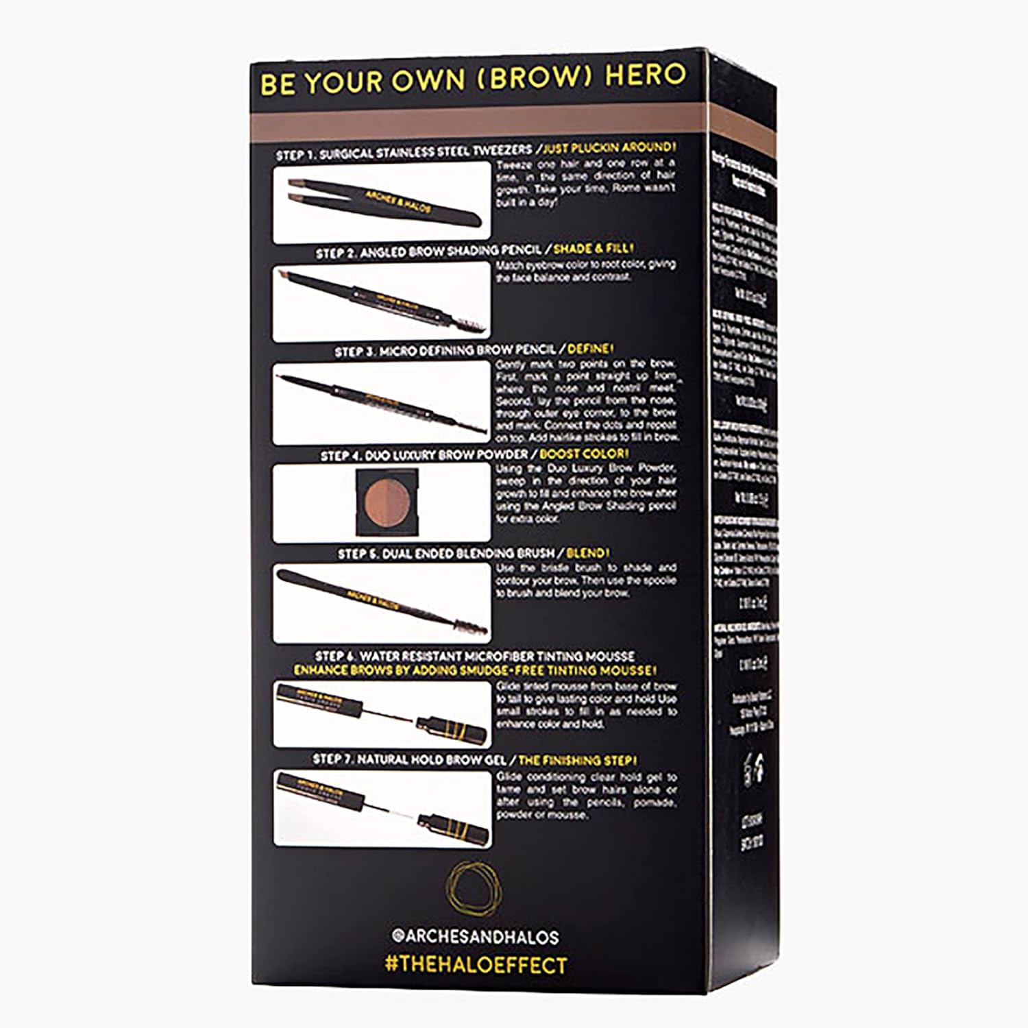 - THE ULTIMATE BROW TREATMENT. The Ultimate Brow Hero Kit arrives with any and every tool you might need for trimming, tinting, plucking, and contouring your brows to perfection. The set includes five tried-and-true Arches & Halos bestsellers.