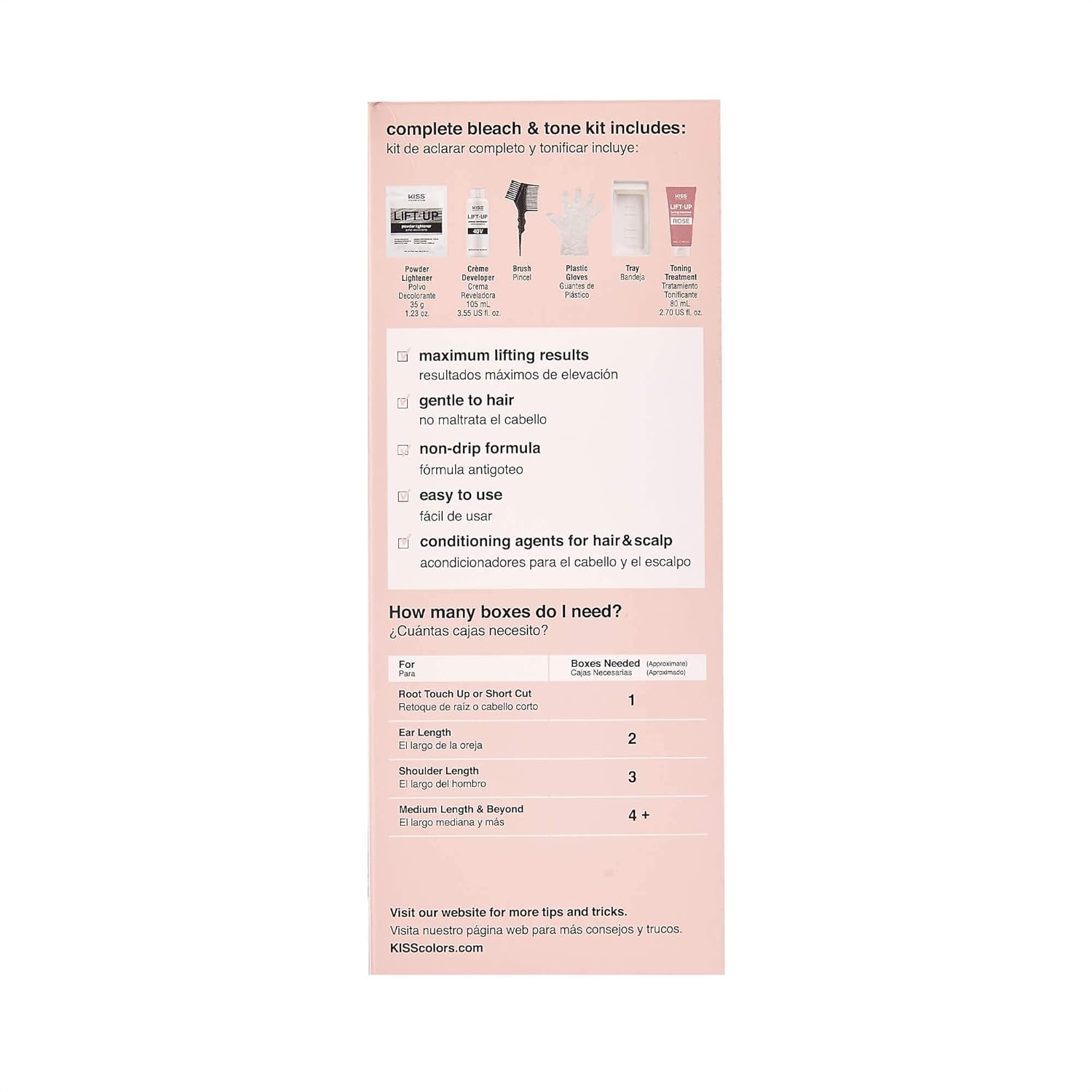KISS Lift Up Complete Hair Bleach Kit with Revitalizing Plex Serum, Strengthen and Protect Hair, 6-Pc Kit Includes Powder Lightener, Creme Developer & More