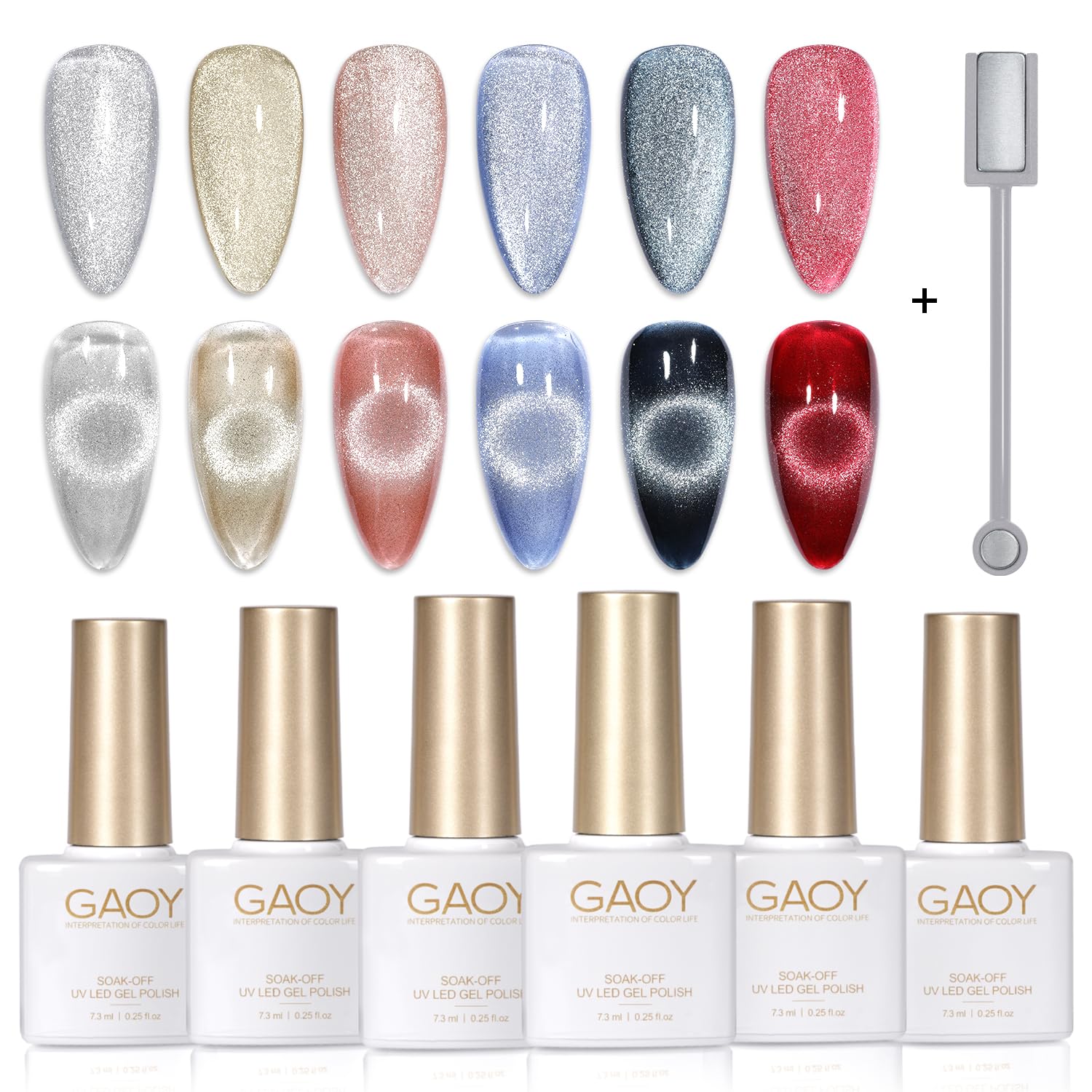 GAOY Holographic Glitter Cat Eye Gel Polish Set of 6 Colors with Free Magnet UV LED Soak Off Nail Polish Home DIY Manicure Nail Salon Varnish
