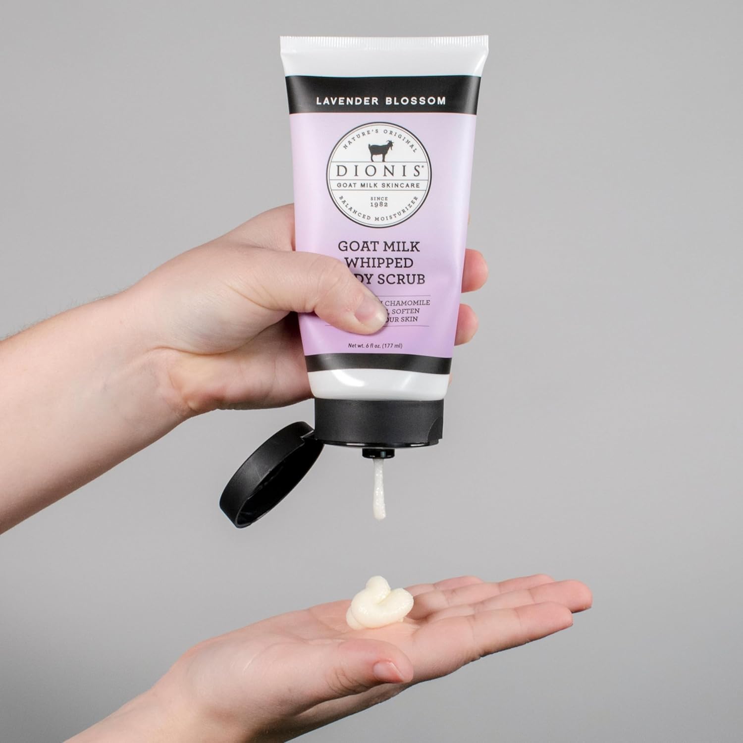 - Gentle Exfoliation - The Dionis Goat Milk Skincare Whipped Body Scrub is gentle, yet hardworking. It removes dry, flaky skin cells to brighten tired or dull-looking skin, leaving behind smooth, healthy glowing skin. It contains natural Goat Milk and Chamomile to replenish and calm skin after exfoliation.