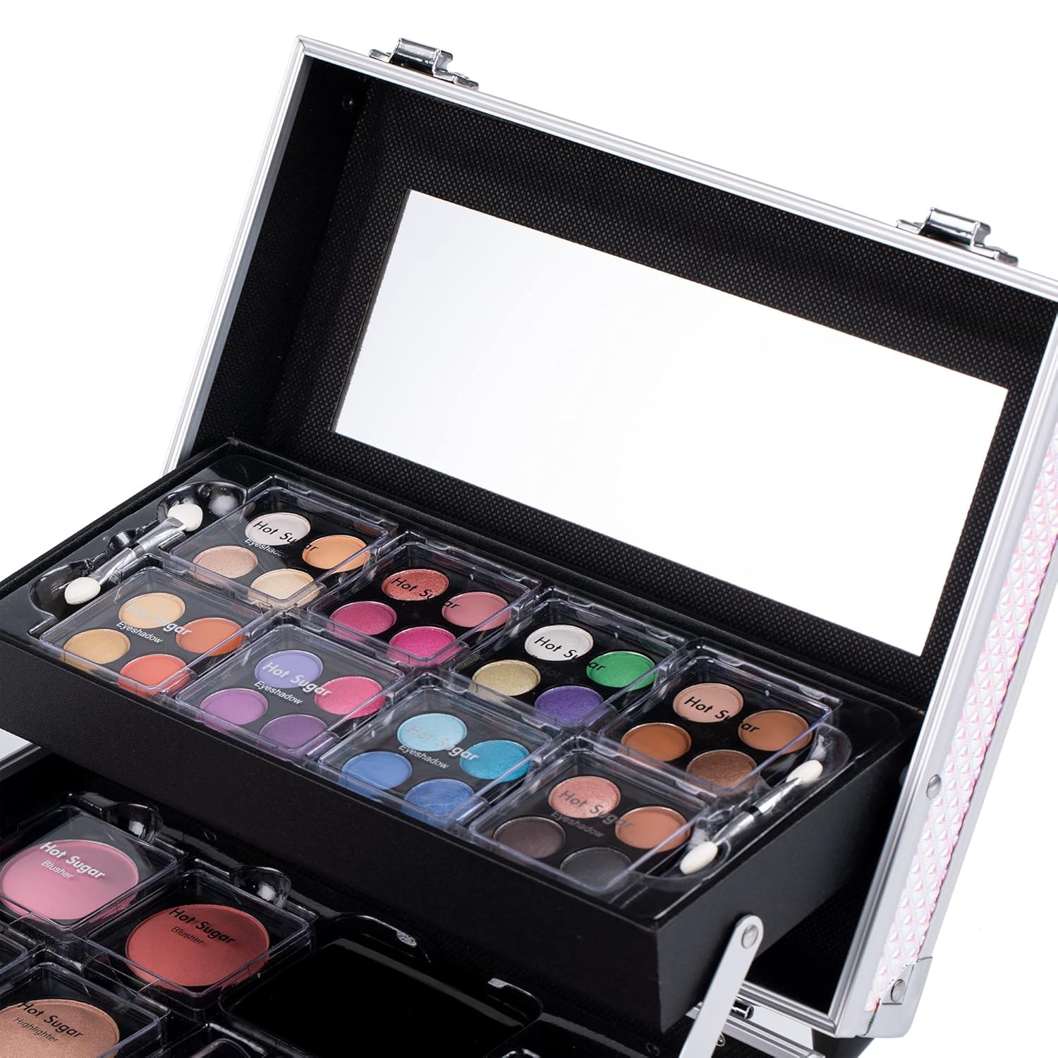 - WHAT YOU GET: 32 eye shadows with 2 applicators, 2 blushes, 2 highlighters, 1 bronzer, 1 contour, 4 eyeshadow cream, 2 lipsticks, 2 lip glosses, 1 brushes, 1 lip liner, 1 eye pencil and 1 mirror box.