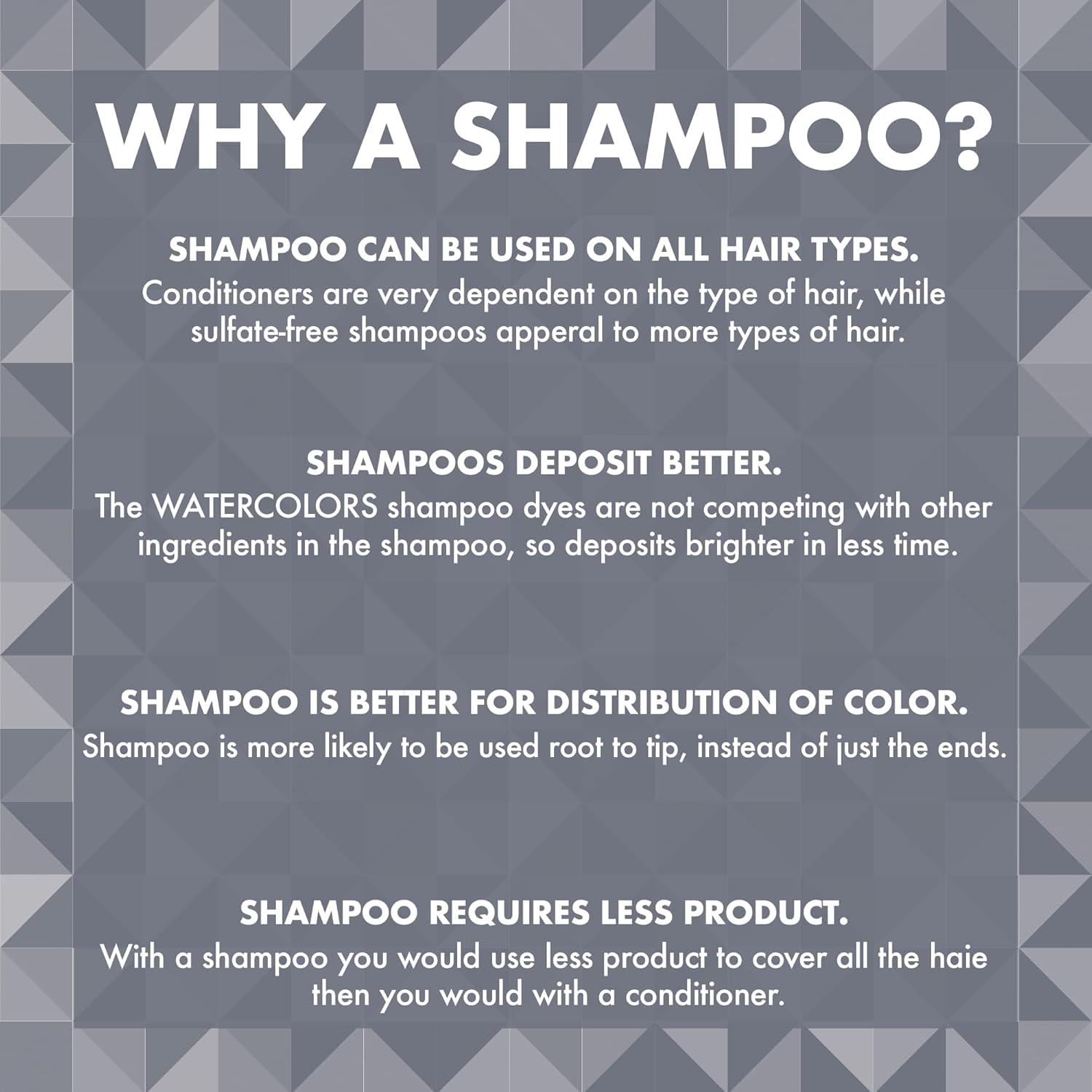 - What Makes Watercolors Shampoos Unique? 3-in-1 Color Depositing Shampoo - Cleanses, Conditions and Refreshes Color: Replace the color that has faded from your hair. Intensify while cleansing and conditioning with every wash. Restore and Rejuvenate color treated hair in one wash