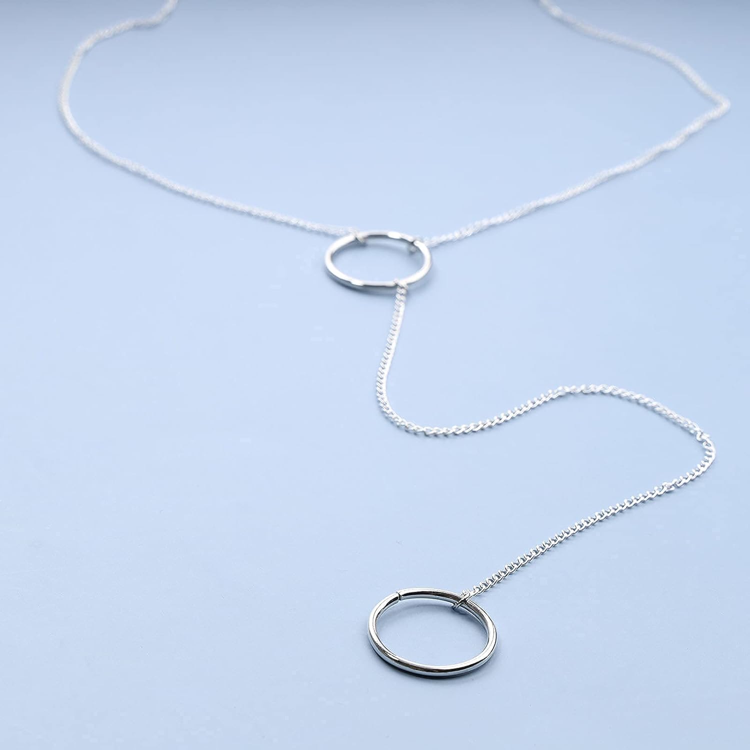 Boho Long Circle Pendant Necklace Silver Y Lariat Necklace Minimalist Y Drop Chain Necklace Jewelry for Women
