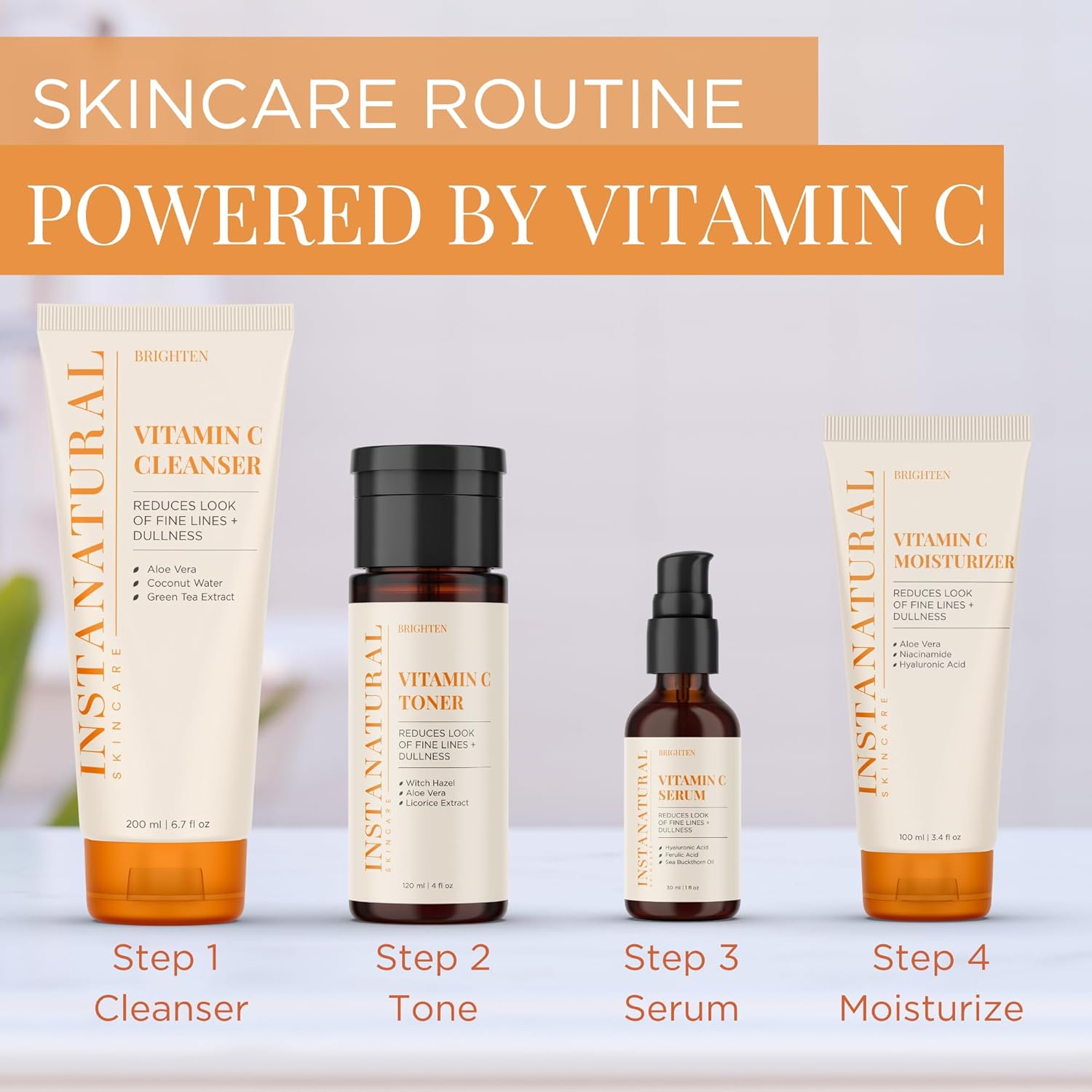 InstaNatural Vitamin C Cleanser and Serum Kit, Brightens and Reduces Signs of Aging, Fine Lines and Wrinkles, with Botanical Extracts
