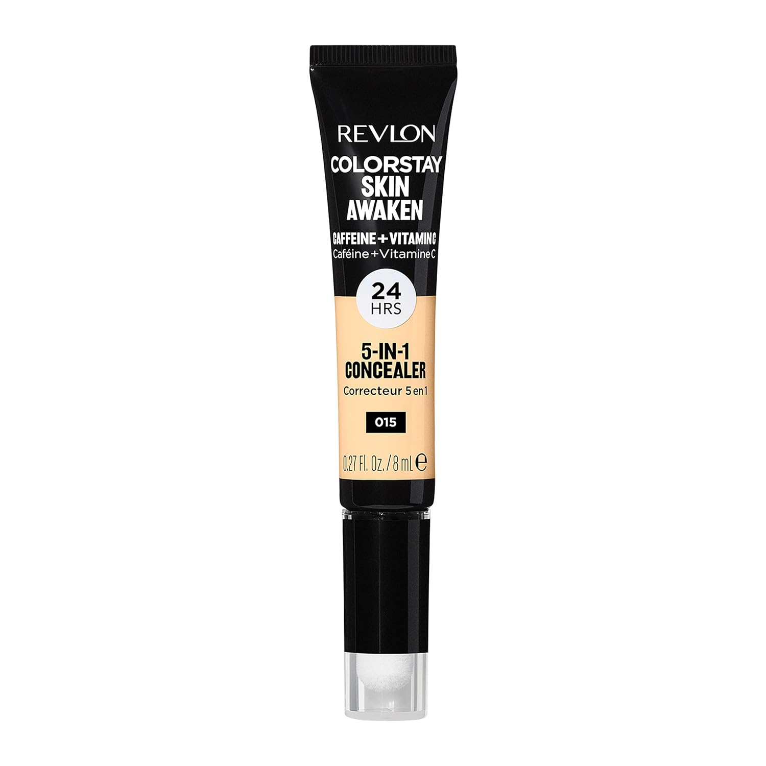 Revlon ColorStay Skin Awaken 5-in-1 Concealer, Lightweight, Creamy Longlasting Face Makeup with Caffeine & Vitamin C, For Imperfections, Dark Circles & Redness, 015 Light, 0.27 fl oz