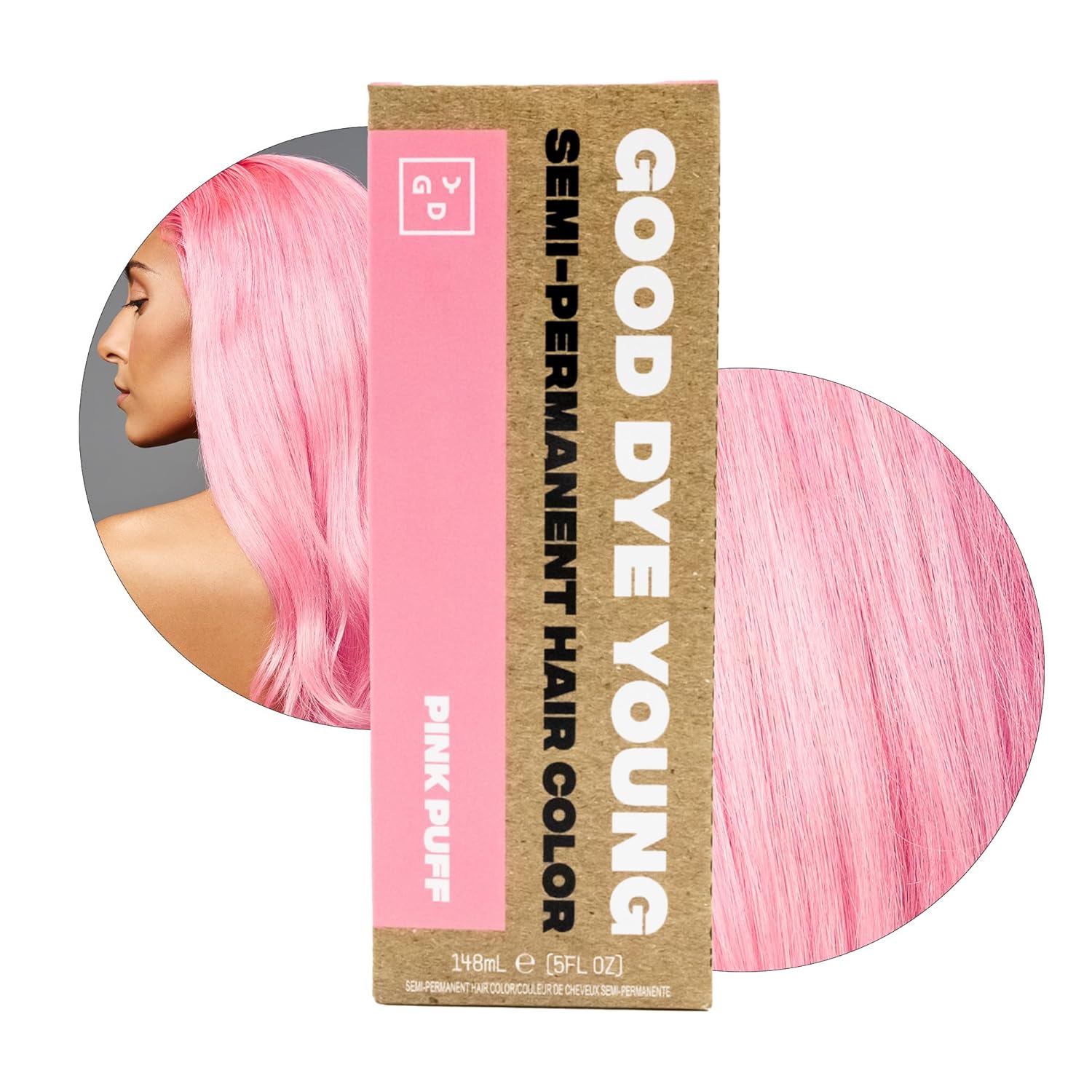 Good Dye Young Semi-Permanent Hair Color, Vegan and Cruelty-Free Pink Hair Dye, Last up to 24 Washes, Non-Damaging Conditioning Hair Color (5FL OZ, Pink Puff)