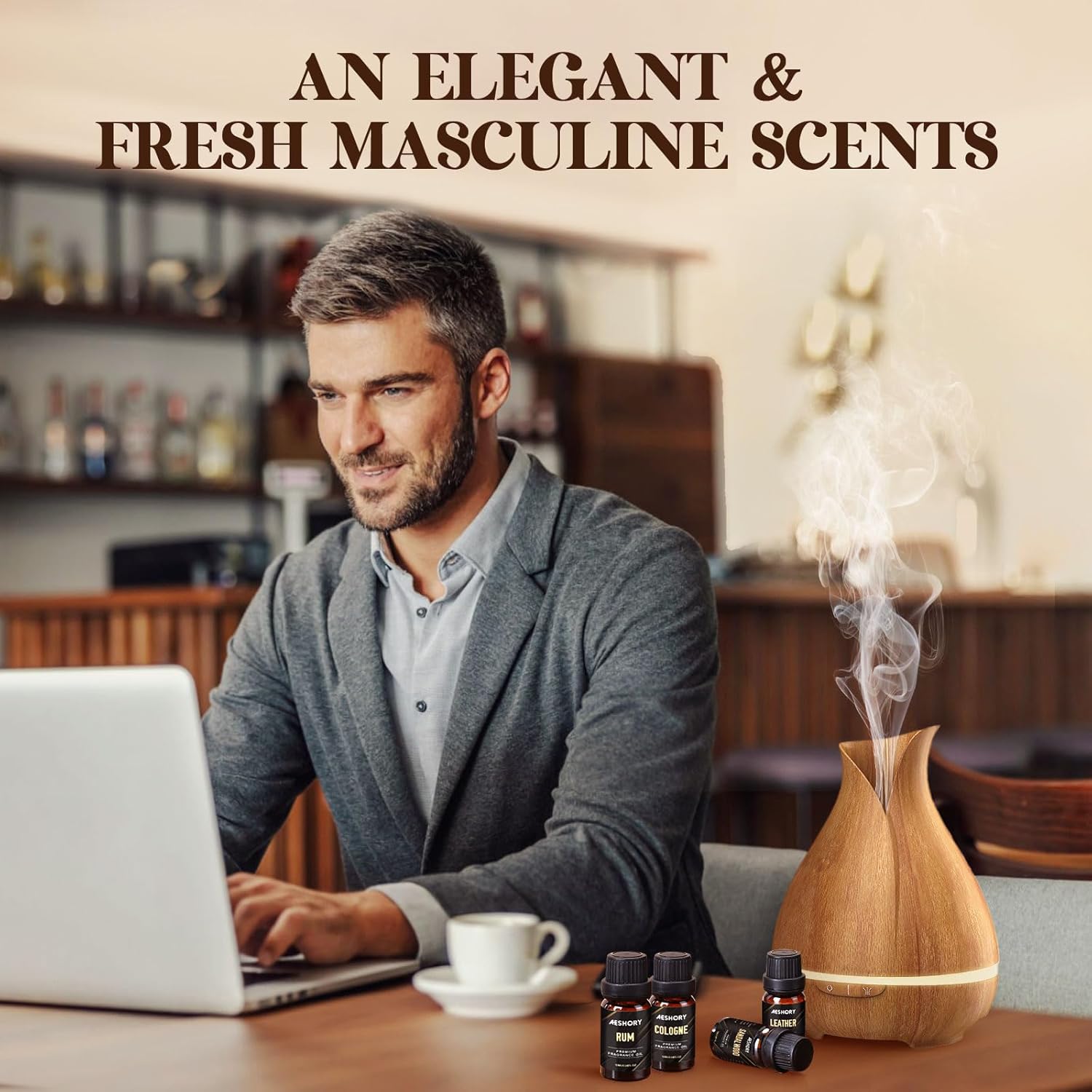 - ✔️【Set of 6 Gentlemen's Fragrance Oil】This men's essential oils set includes a series of manly and woodsy scents, including Sandalwood, Cedar, Leather, Sweet Tobacco, Bay Rum, Cologne aromatherapy oils, experience the masculine scent from smoky to woody with our men's fragrance oils set.