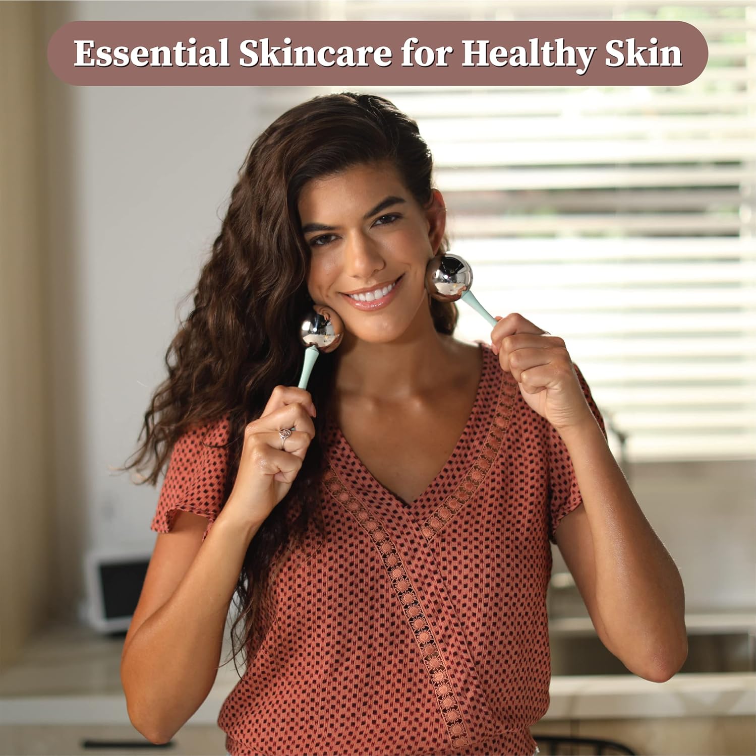 Facial Ice Globes for Face - 360 Stainless Steel face wand Globes Massager For Puffy Eyes & Dark Circles, Stimulates Collagen to Tighten Skin & Shrink Pores, Enhance Circulation & Smooth Looking Skin