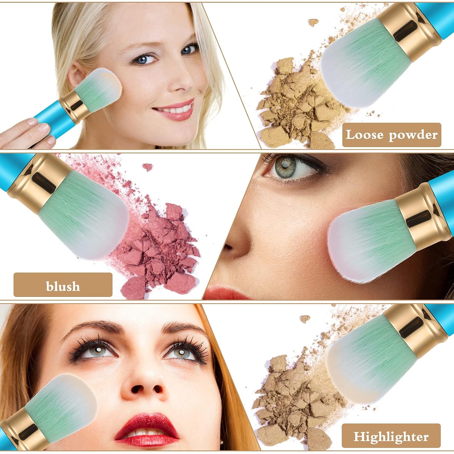 - 【Power of Beauty】 This powder blush brush is great for everyday makeup, well made, fixed Firmly, no shedding, no smell, suitable for powder, bronzers, and mineral blush makeup, you can long time using, synthetic bristles are ultra plush and smooth,natural-looking coverage on every part of the face.