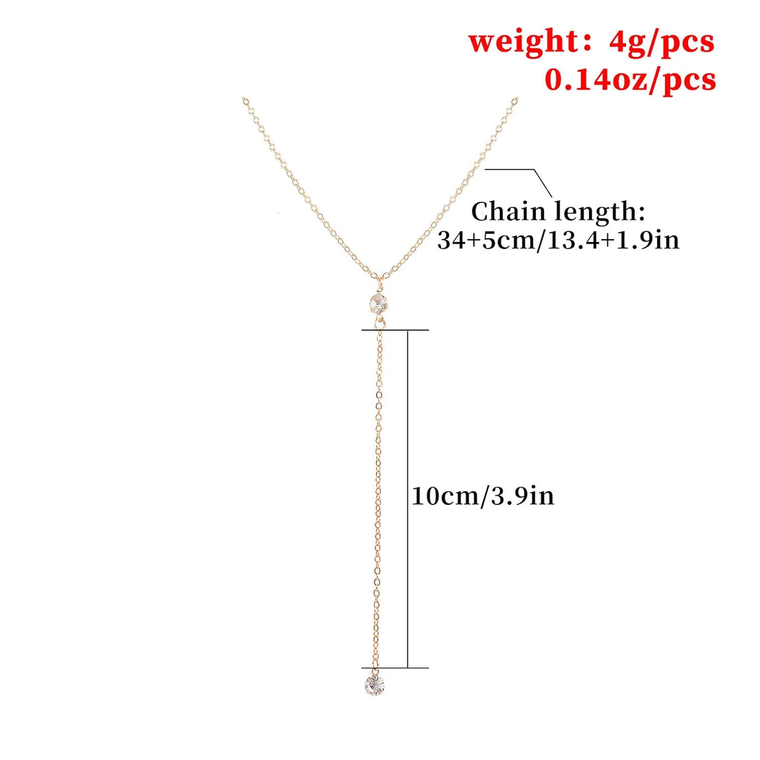 Boho Crystal Y Drop Necklace Choker Gold Long Y Necklace Chain Minimalist Cz Lariat Necklace Classic Simple Y Lariat Necklace Jewelry for Women and Girls Gifts