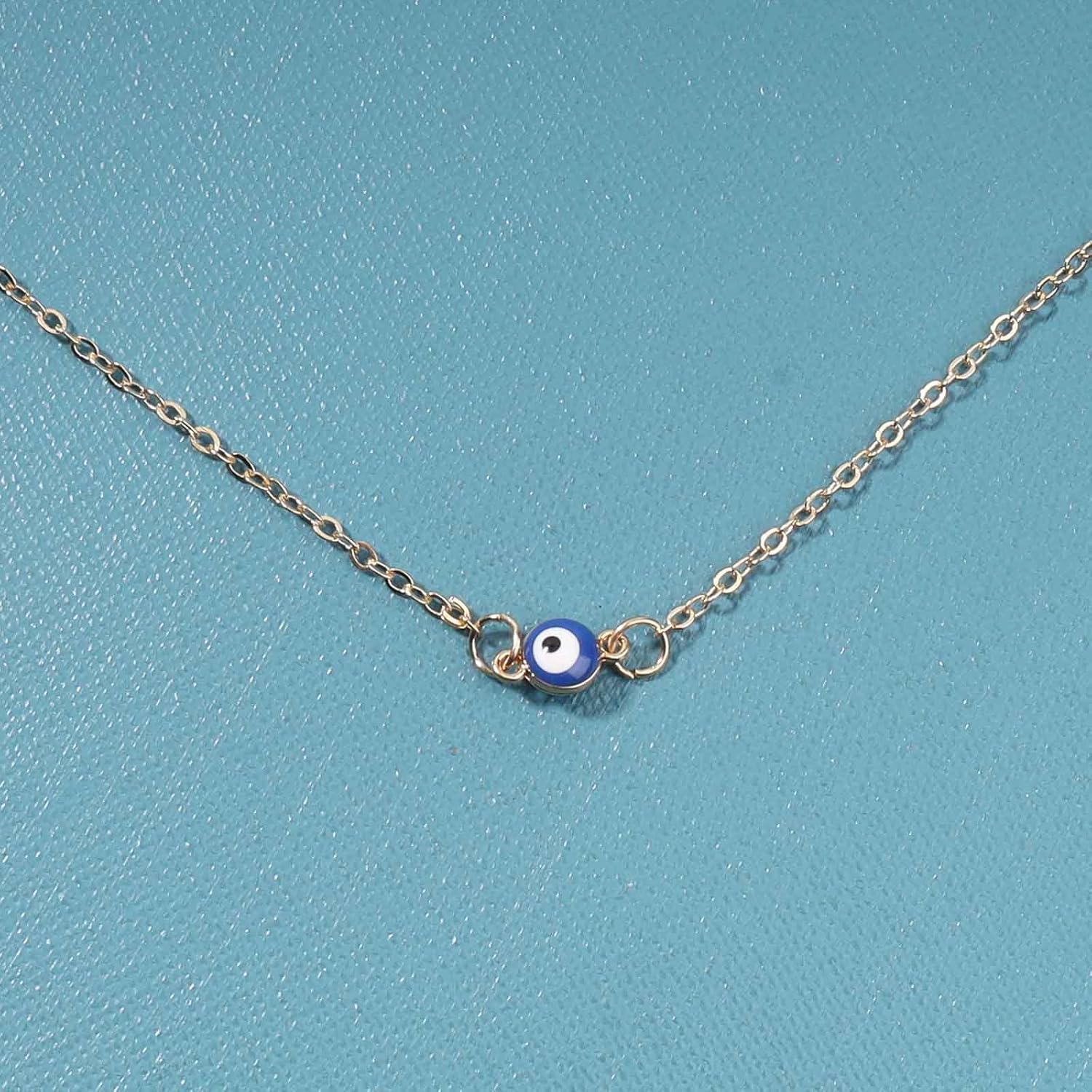 Boho Evil Eye Choker Necklace Blue Eye Pendant Necklace Minimal Gold Chain Necklace Lucky Eye Necklace Amulet Chain Jewelry for Women and Girls