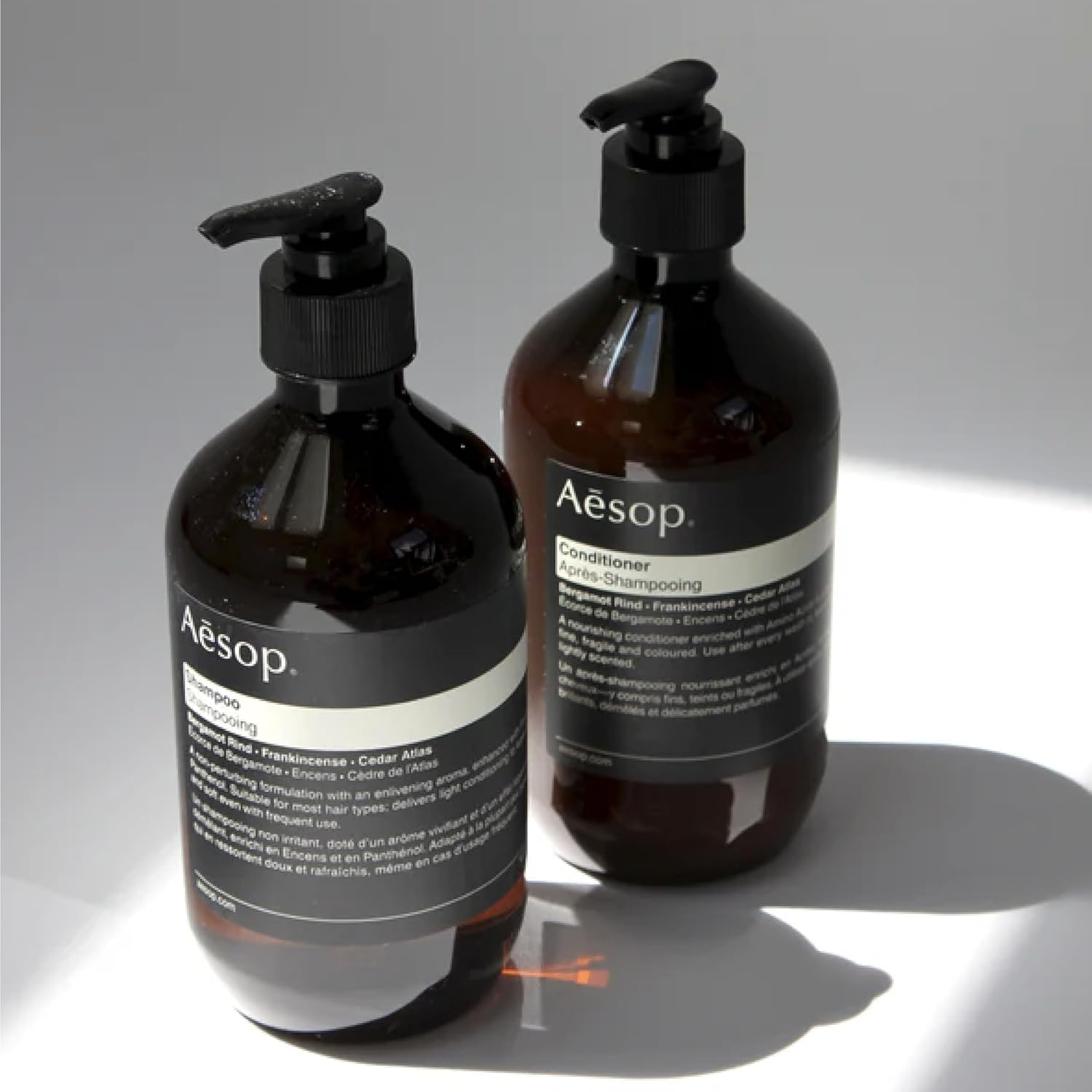 - Aesop Shampoo: An enlivening shampoo with a suite of sophisticated ingredients, including Frankincense and Panthenol, to cleanse strands and scalp, and help effect soft, shiny, fragrant hair.