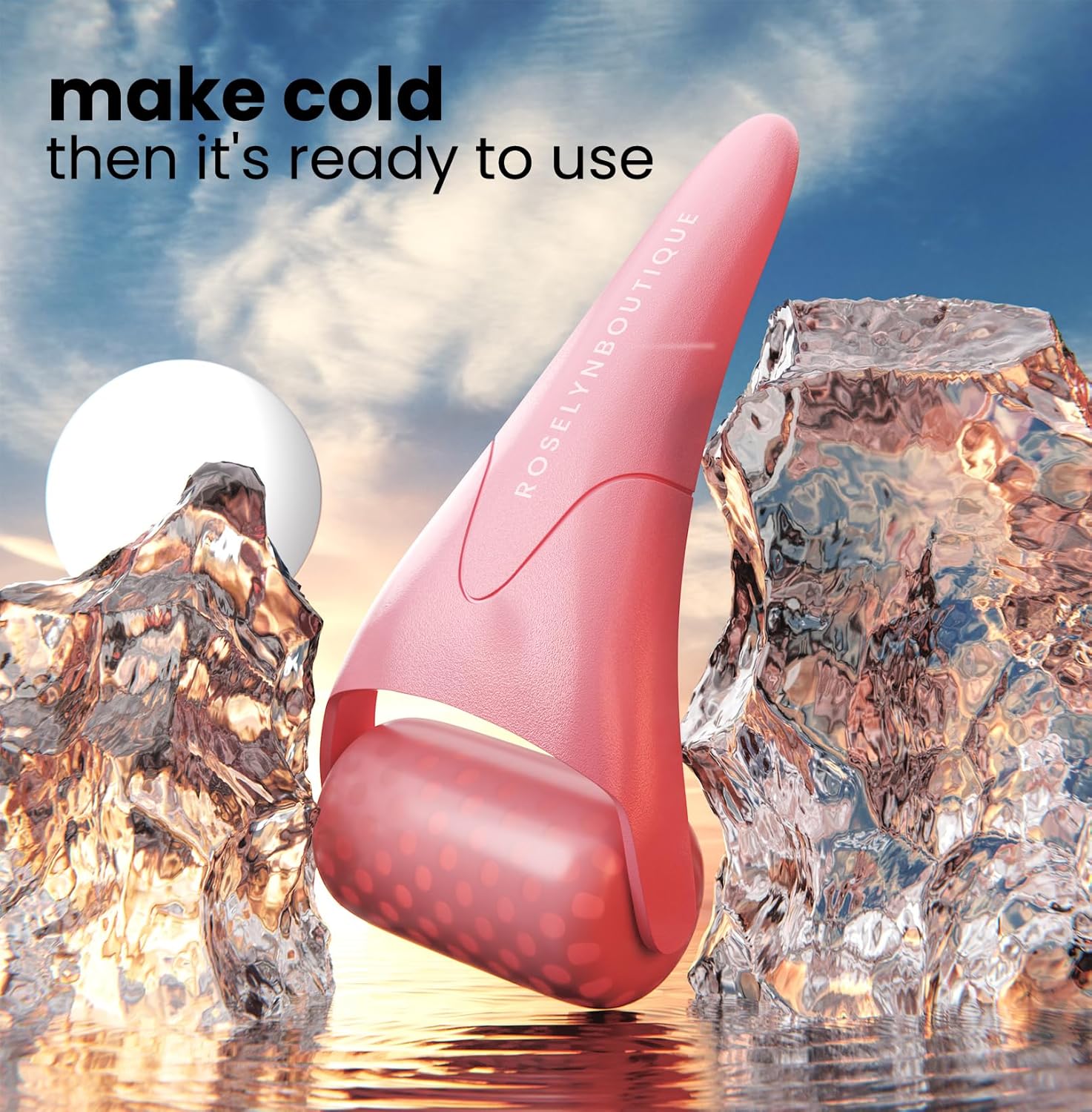 ROSELYNBOUTIQUE Ice Roller for Face Wrinkles Fine Lines Puffiness Stick Massager Facial Skin Care Tools Self Care Gifts for Men Women (Pink)