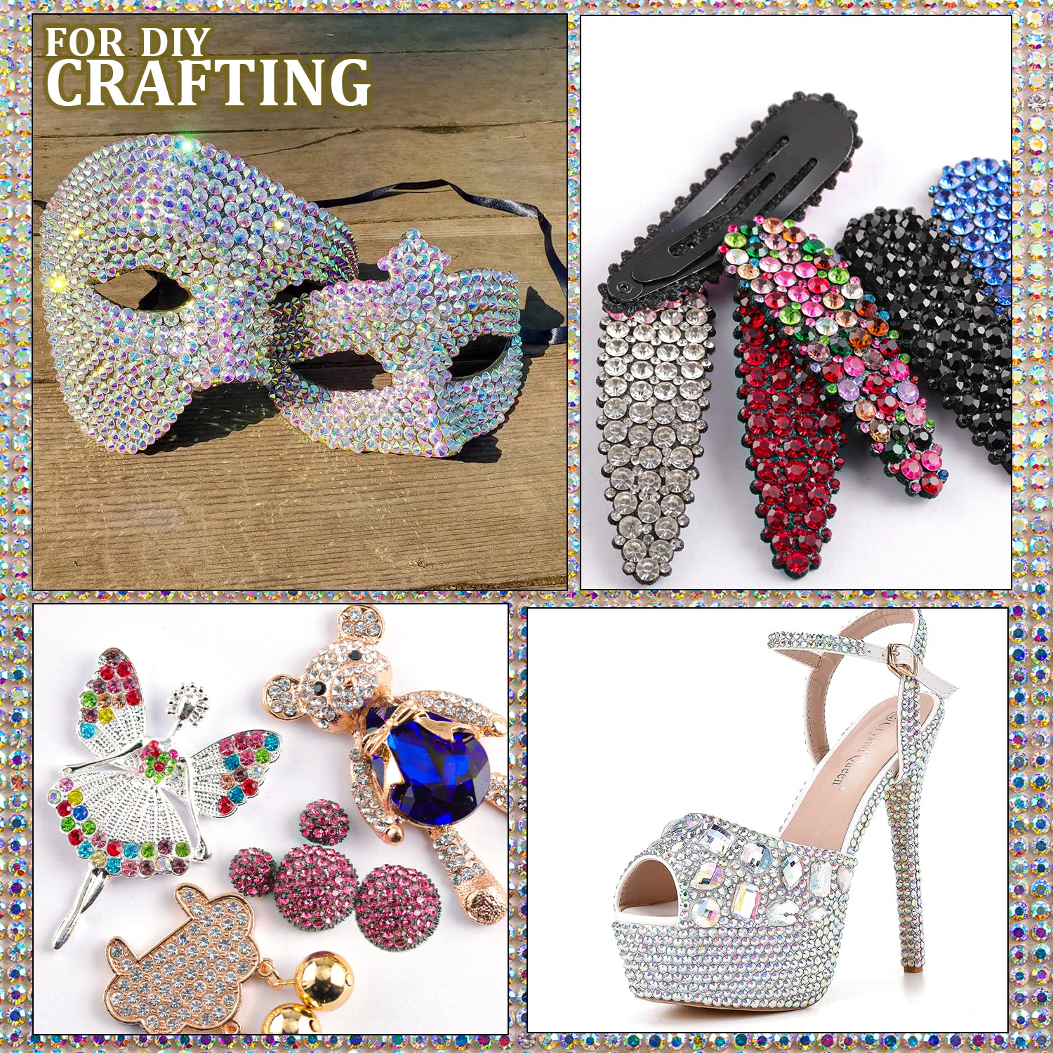 - ❤WIDE APPLICATION --The Crystal Iridescent Gems Nail Rhinestones Are Perfect for Creating 3D Nail Art or Decorating Jewelry, Makeup, Body Art, DIY Crafts, Wedding Dress or Shoes, Cell Phone Cases, Glasses, Greeting Cards, Bags, Guitars, Scrapbooks etc.