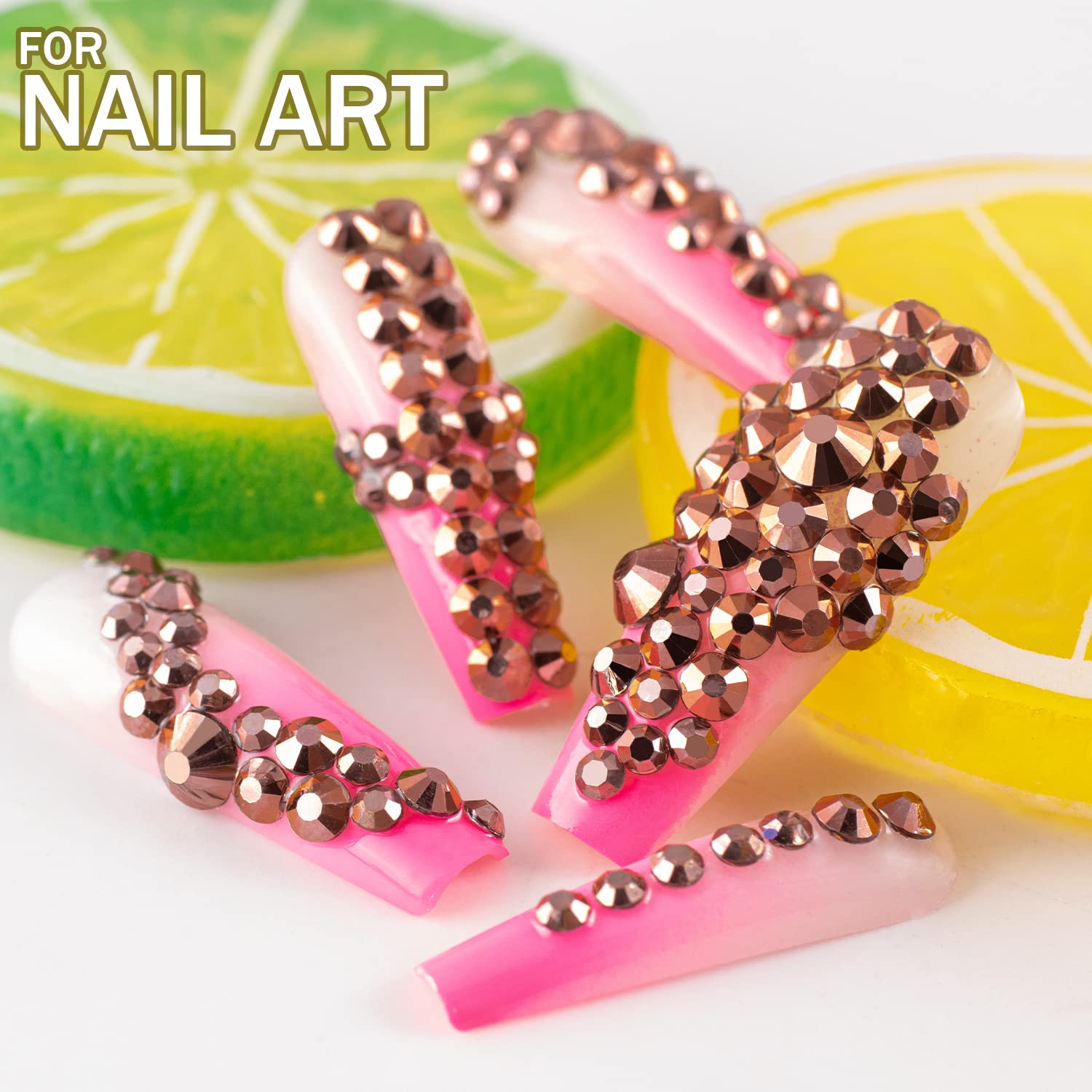 - ❤WHAT YOU WILL RECEIVE -- 1 Box of 6 Sizes Flatback Round Rose Gold Rhinestones; 1 Pc of Rhinestone Pickup Pencil; And 1 Pc of Tweezer for Picking up Beads. This Rhinestone Set Is Good for Both Professional Nail Tech Salons and Starters For Nail Art Or Decorations.